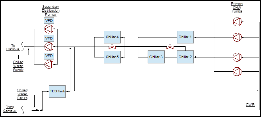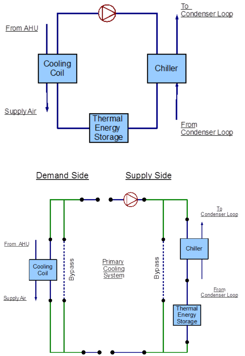 that use thermal energy storage tanks and those that have a primary/secondary pumping