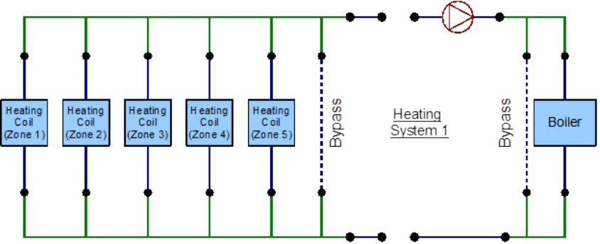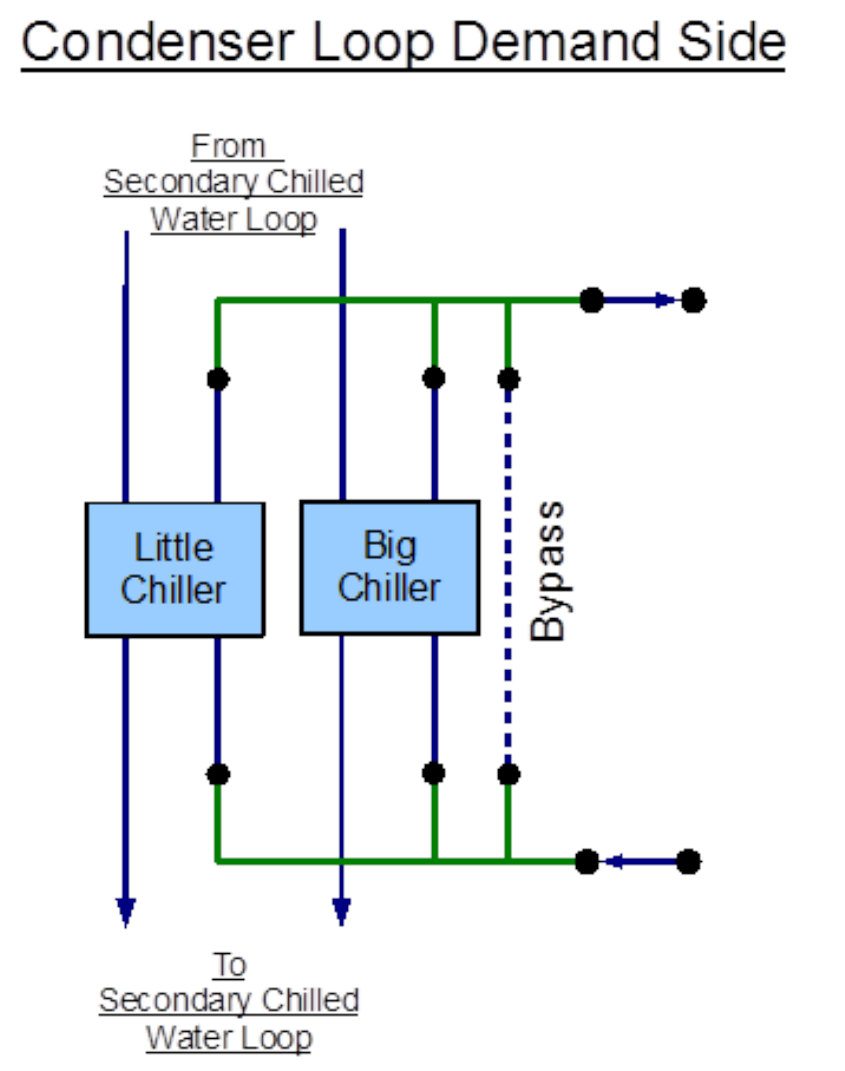 Figure 8.36: EnergyPlus line diagram for the demand side of the Condenser Loop