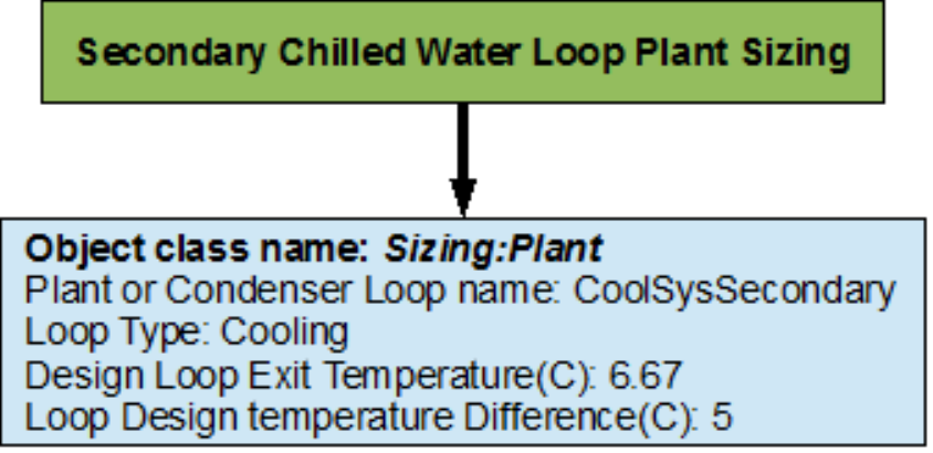 Sec Loop Temp Schedule declares that the outlet temperature of the Secondary Cooling loop