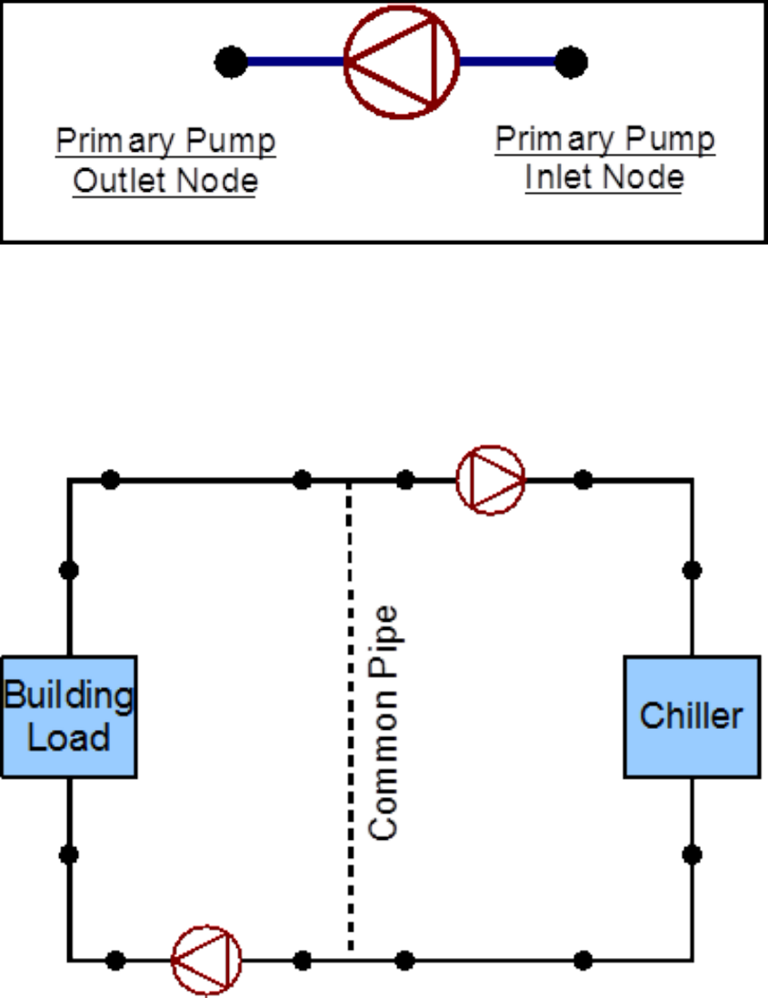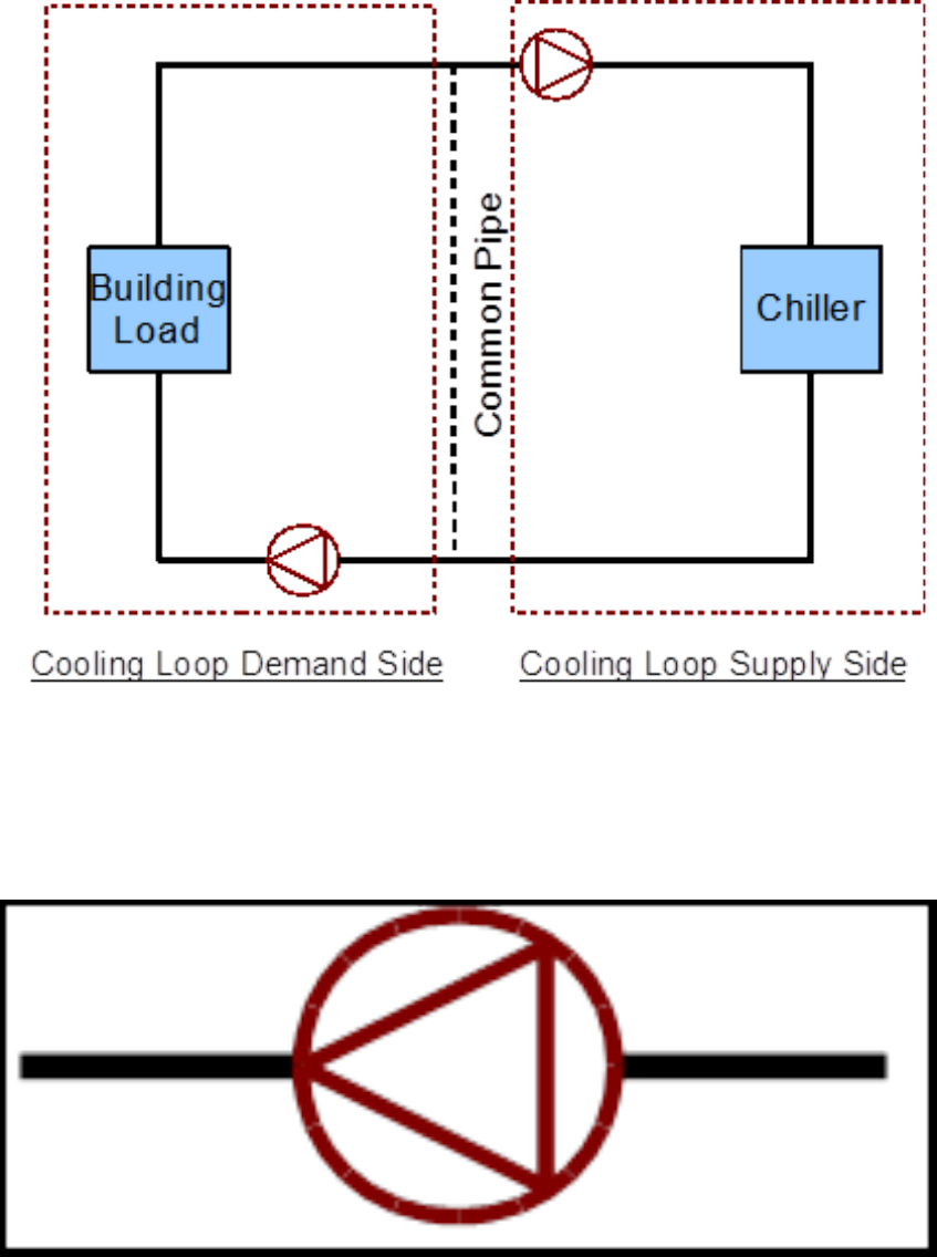 (modeled by using a Pump:VariableSpeed) to supply cooling water to the chillers in the