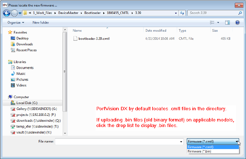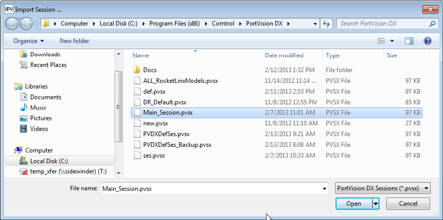 5. Use a .pvl extension on the file name so that PortVision DX quickly locates your file in