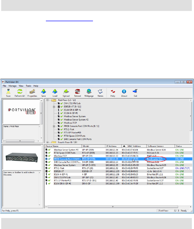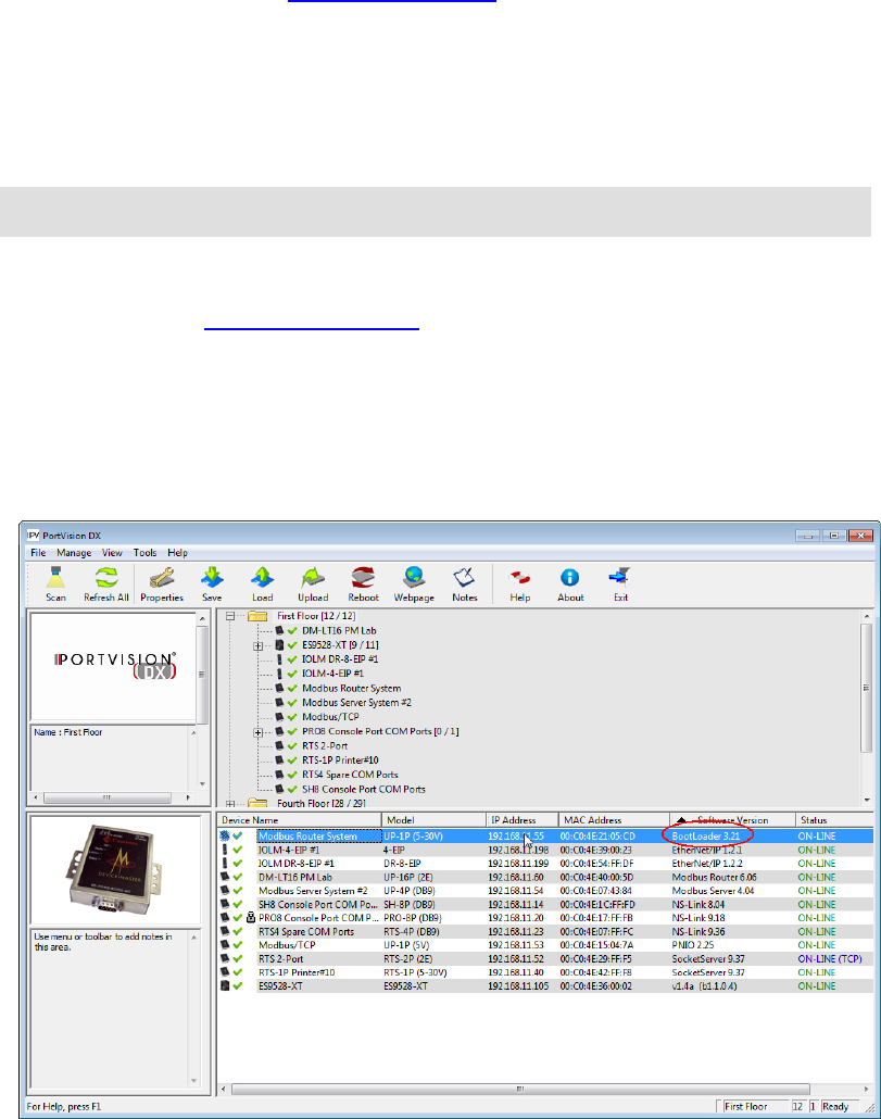 PortVision DX can only determine whether a Comtrol Ethernet attached product is