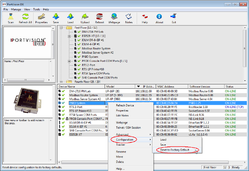 • The device is in the process of booting up and may show as ON-LINE at the next PortVision