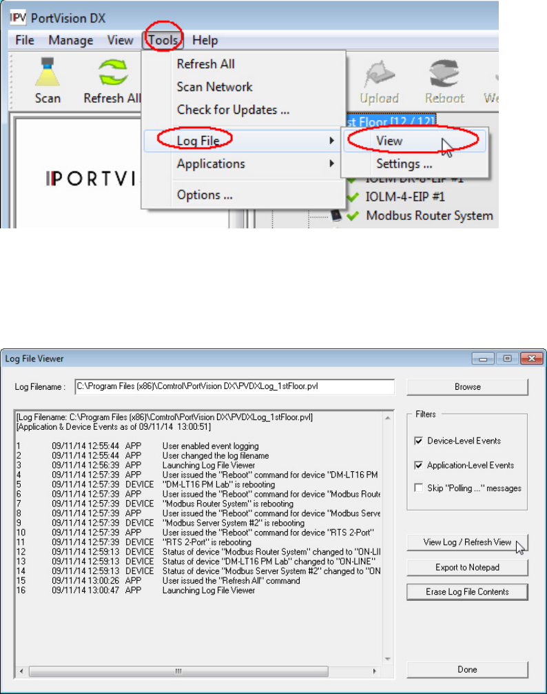 1. From the Main screen, click the Tools menu, click Log File, and then click View.
