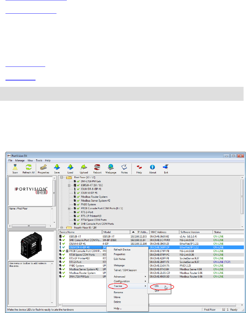 1. Right-click or highlight the RocketLinx in the Device List pane, click Tracker, and then