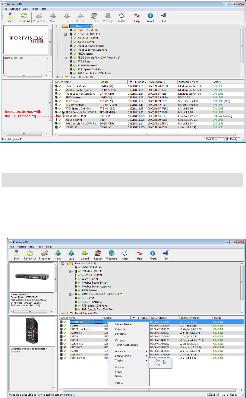The IO-Link Master and RocketLinx supports the LED Tracker feature, which allows you to toggle