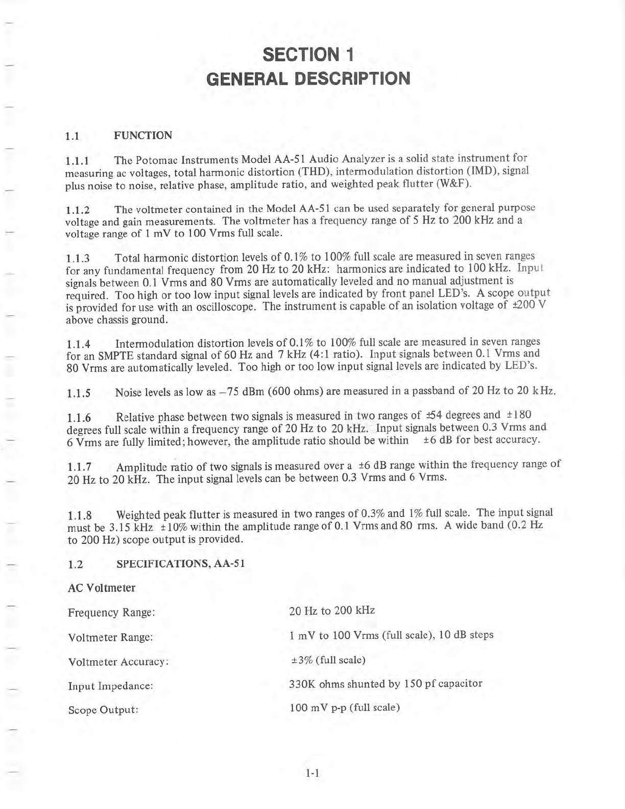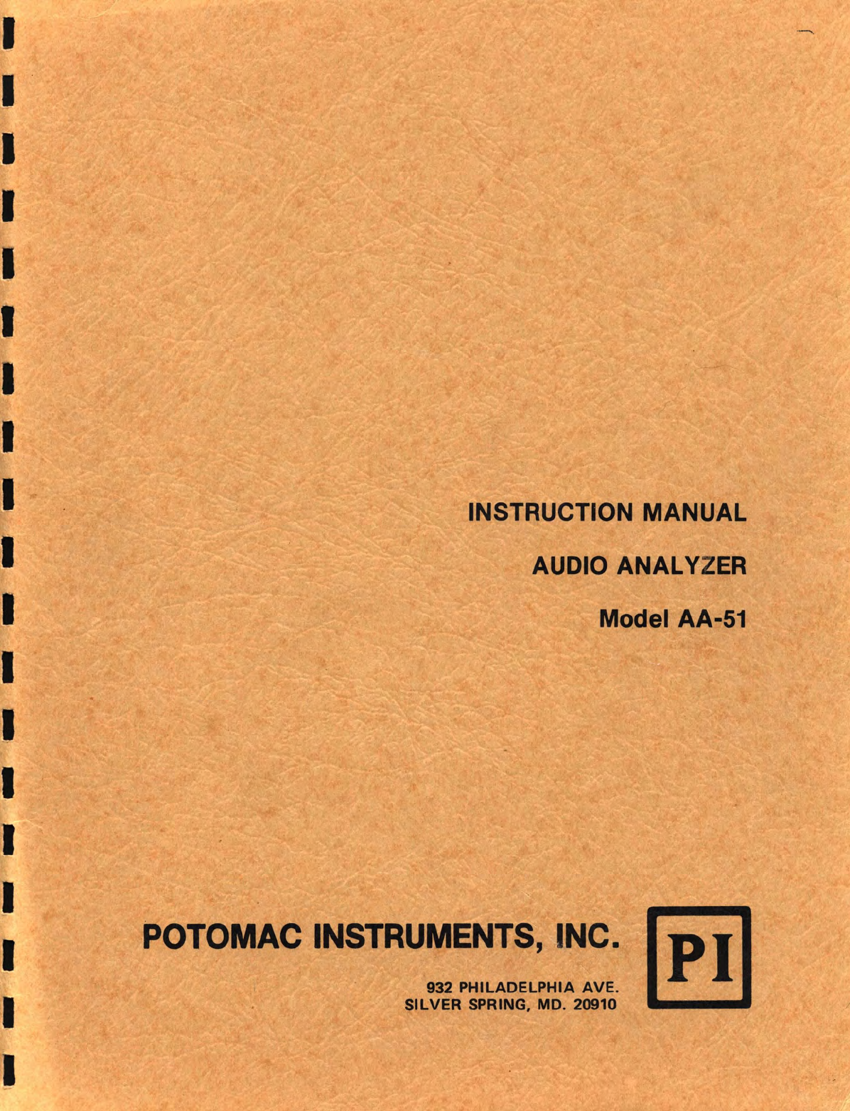 Potomac Instruments AA 51 Audio Analyzer Manual