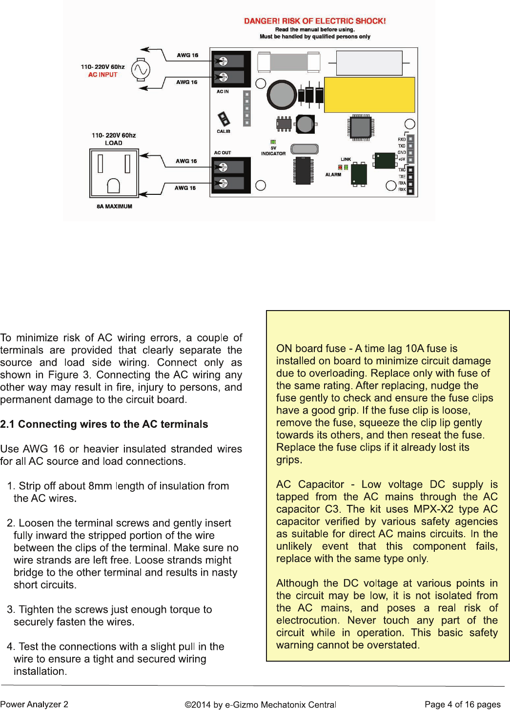 correct connectors. Heavy AC power may pass through this circuit, any loose wiring will pose a