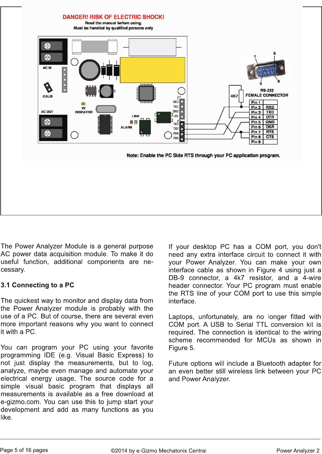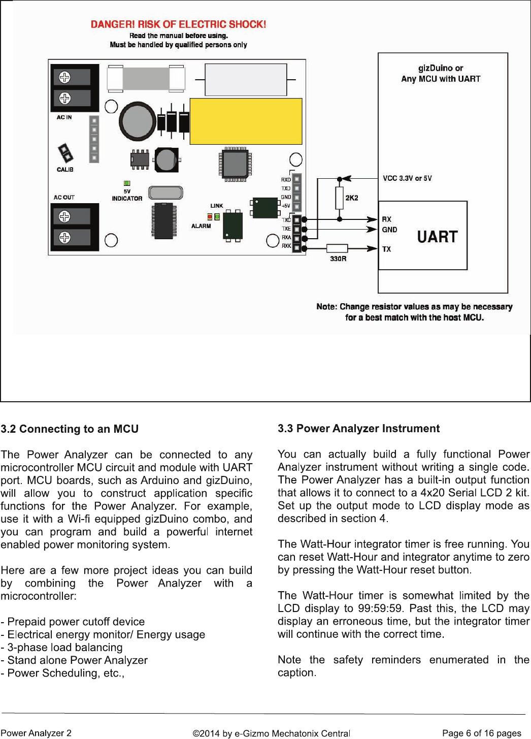 Figure 5. Interfacing the Power Analyzer with an MCU or gizDuino/Arduino controller. Any MCU equipped