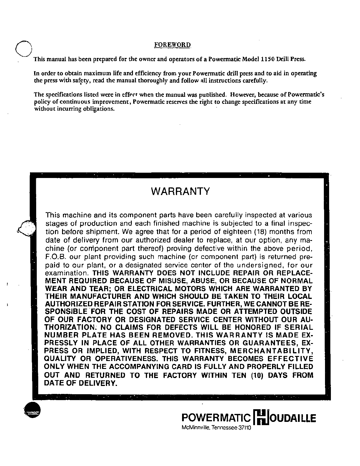 User Manual: Powermatic-1150-Drill-Press-Manual Igor's of metalworking and electrical manuals