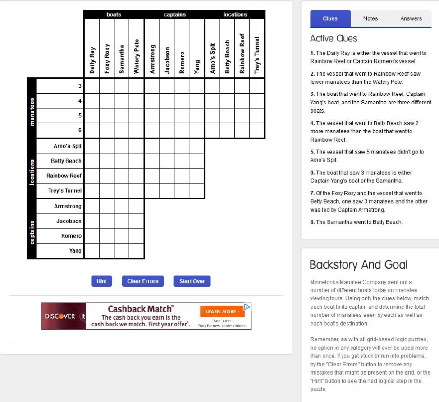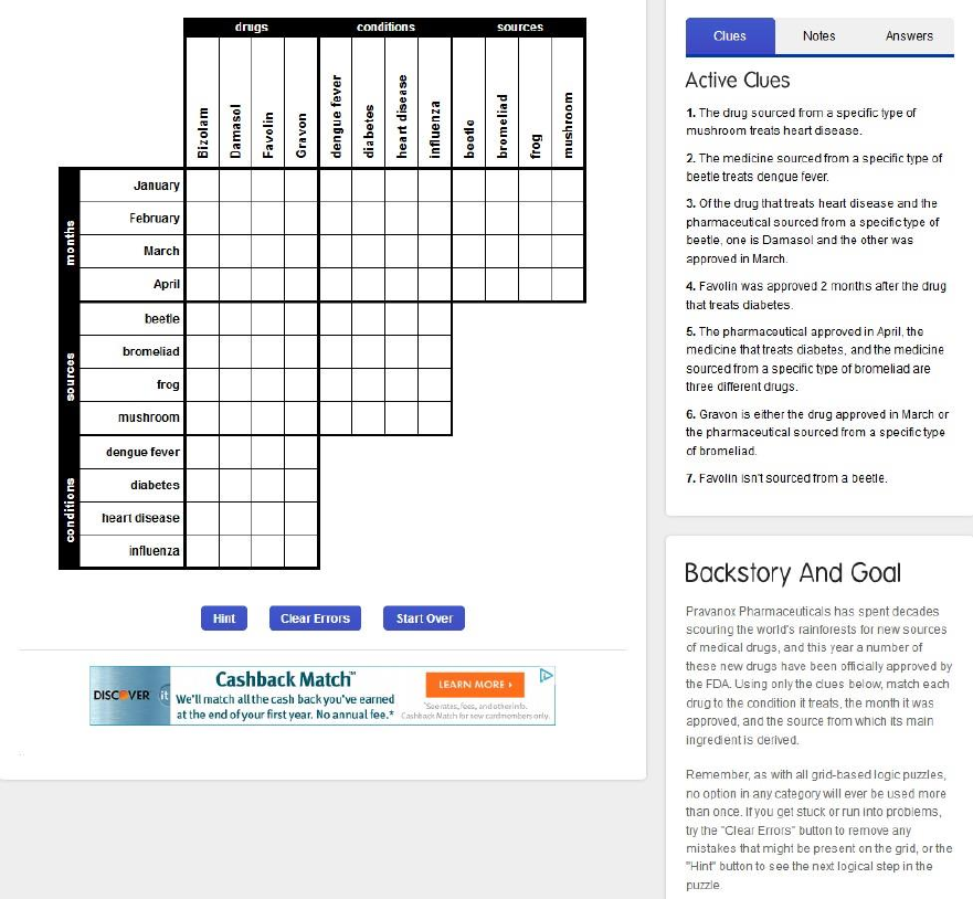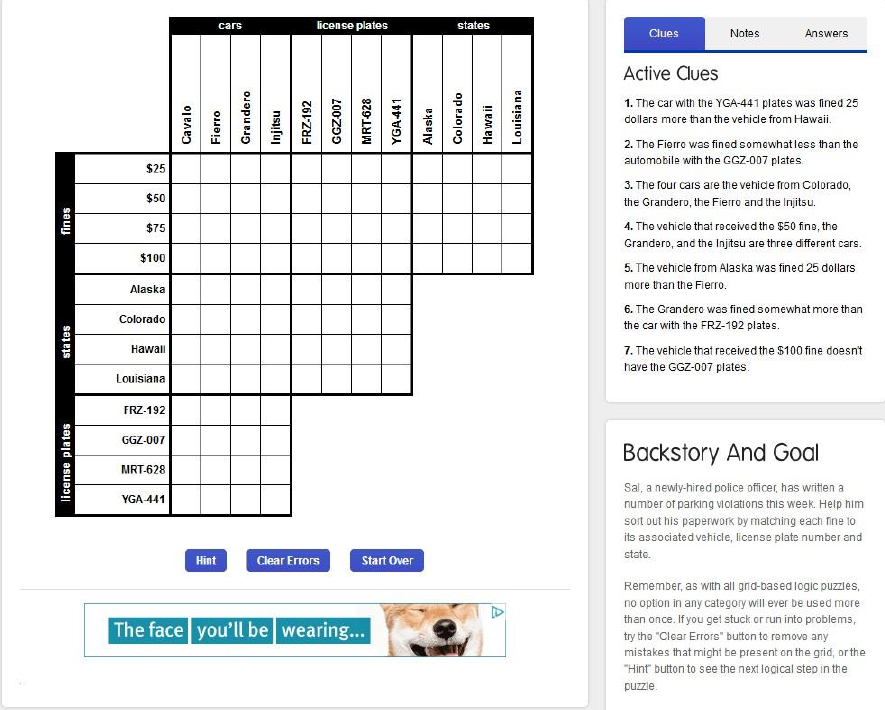 We encourage you to visit the site and attempt to solve some puzzles on your own, by going through the
