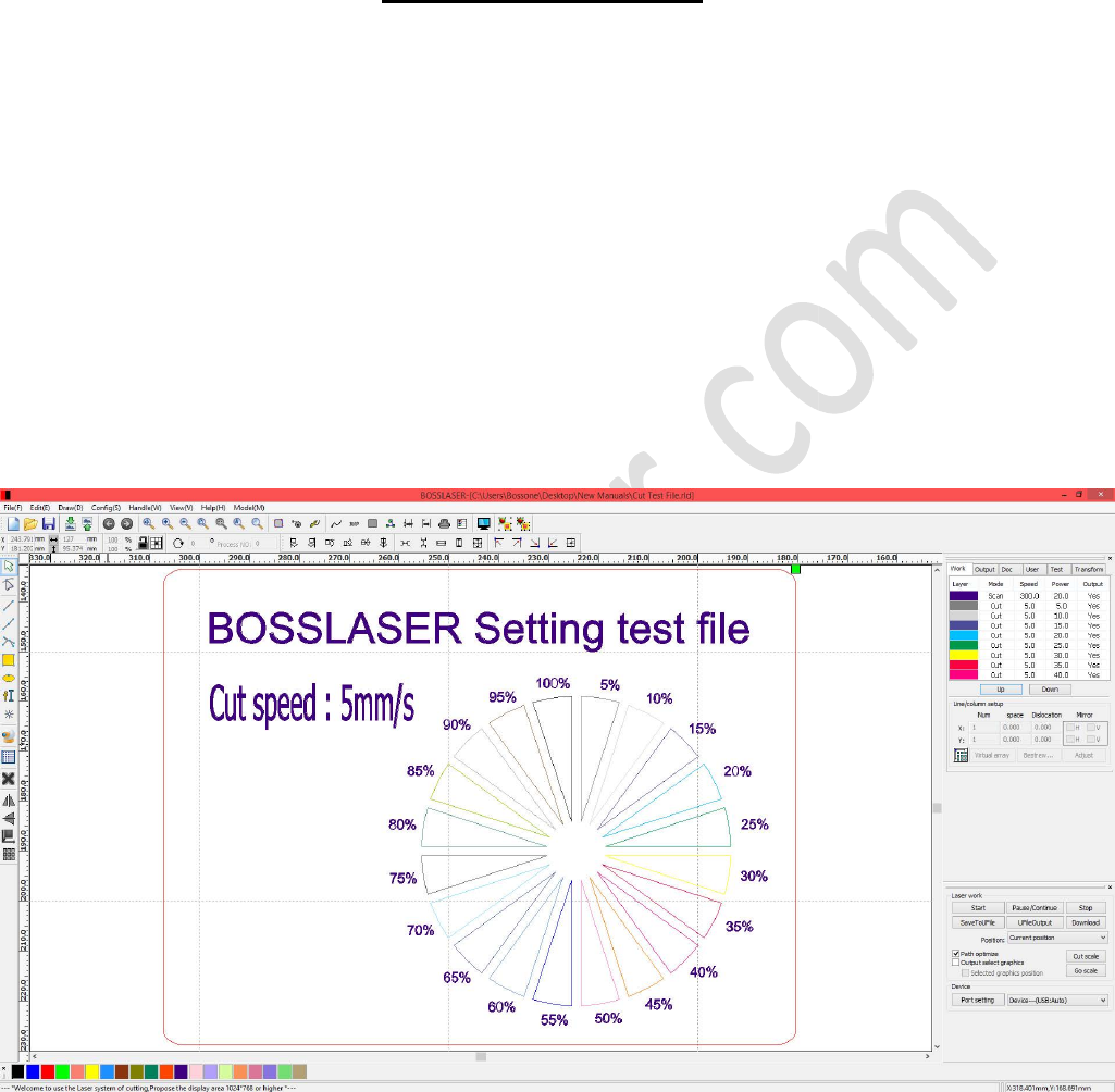 Figure 4. Cutting test file with different power settings @ 5 mm/s.