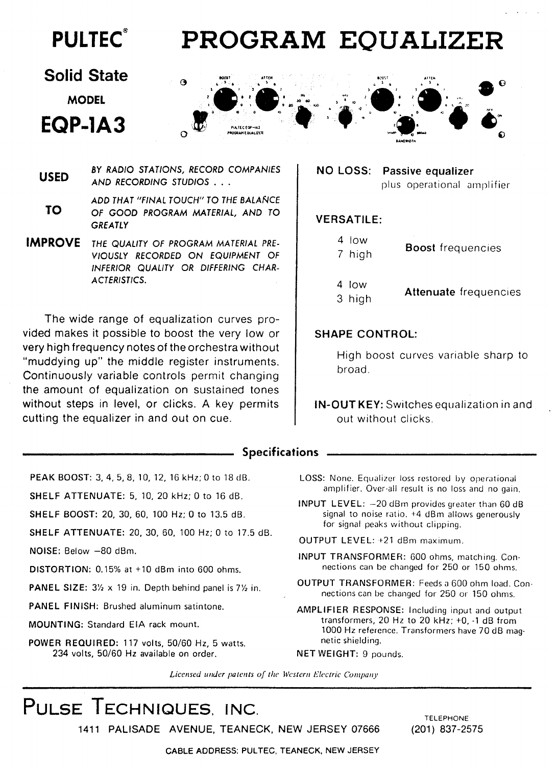 User Manual: Pultec_EQP-1A_Manual