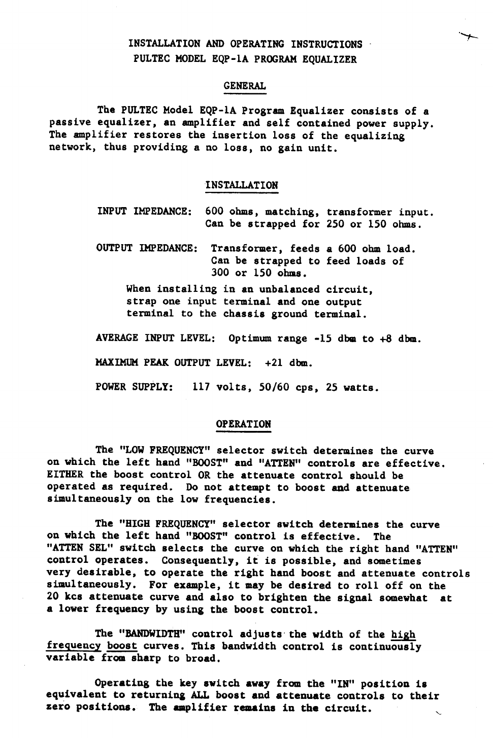 Pultec_EQP 1A_Manual Pultec EQP 1A Manual