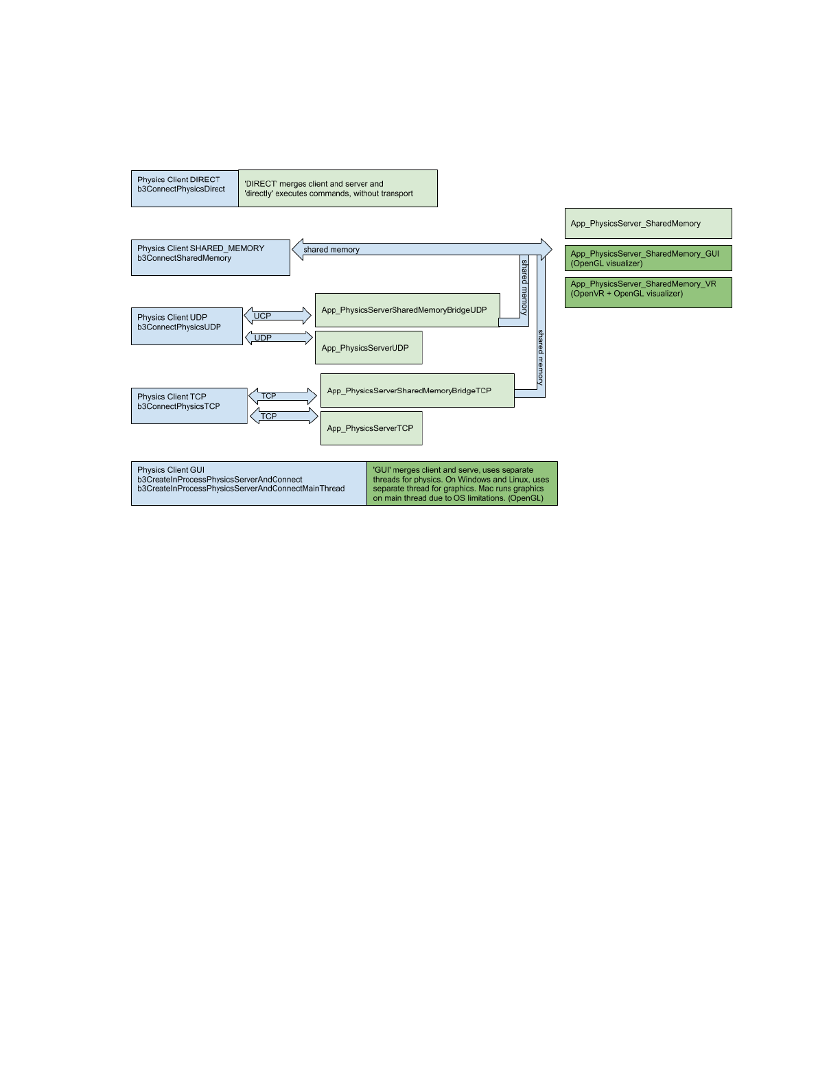 ● Alternatively, you can run the physics server on the remote machine, with UDP or TCP