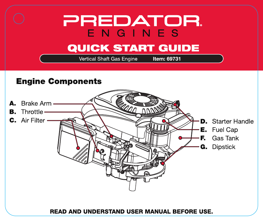 Quick Start Guide For The 69731 173 Cc OHV Vertical Shaft Gas Engine Certified California Q69731