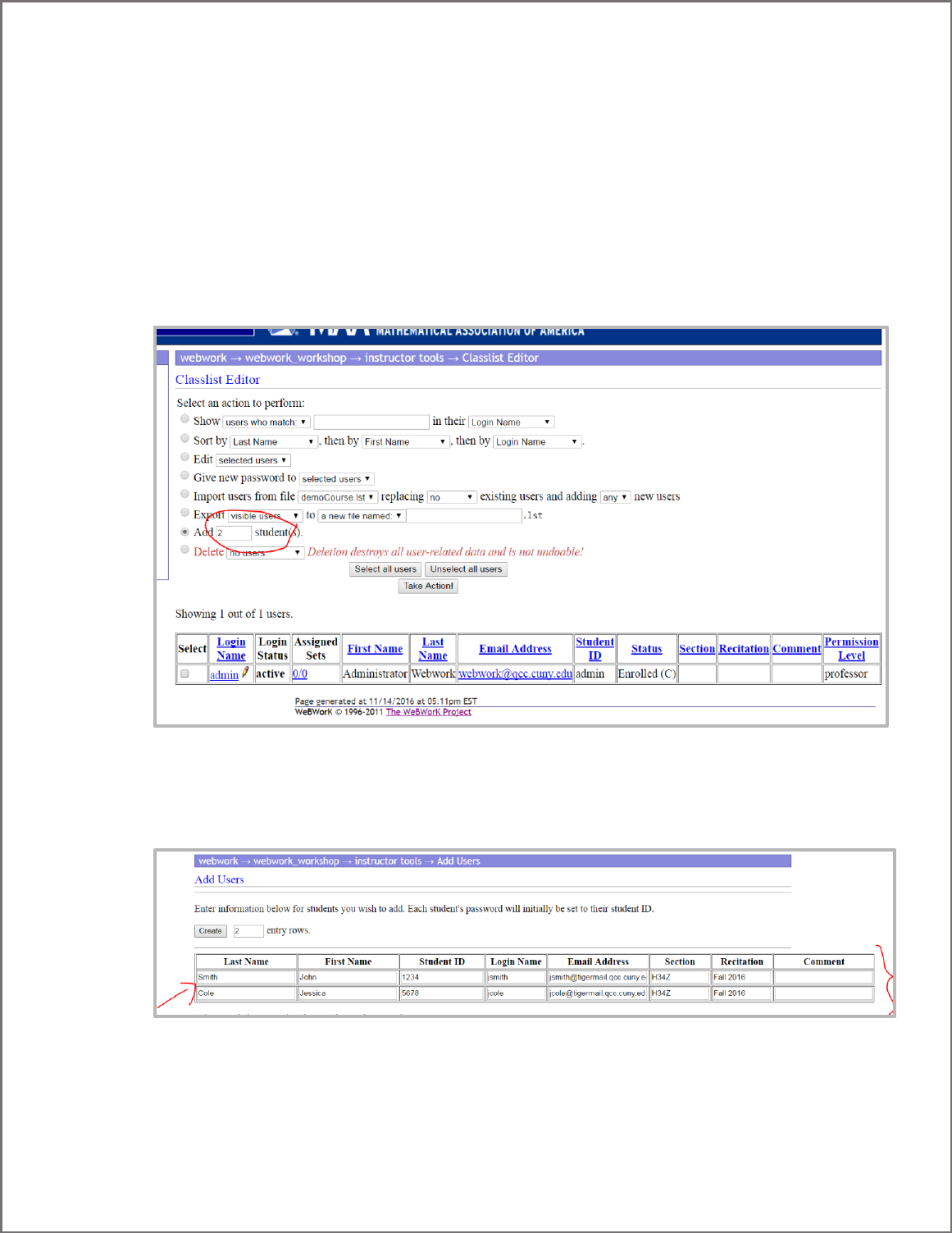 Select add “2” student(s) - you can change the number of students to add to the number