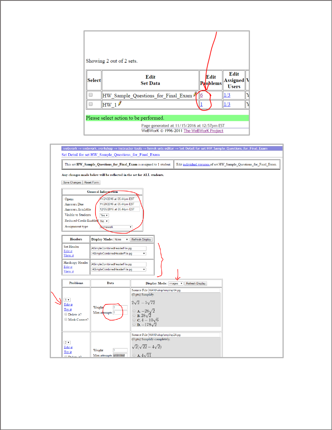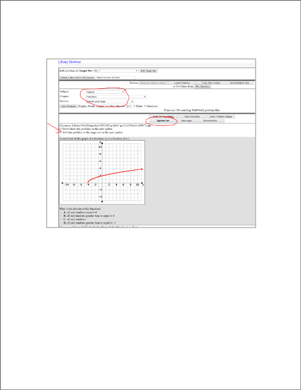 To view / add problems to the set, follow the instructions in Option #1.