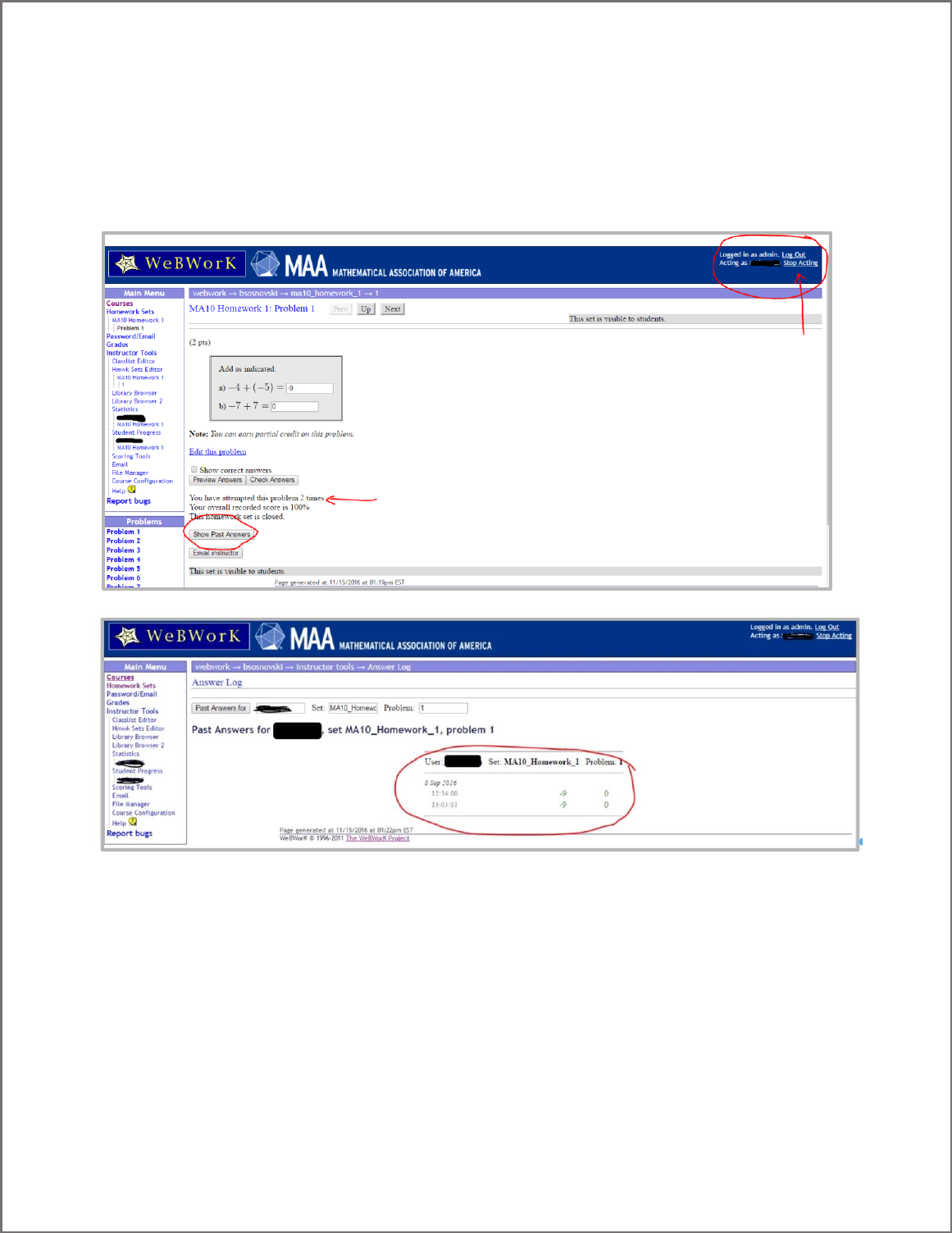 past answers” to see all of the answers submitted by a particular student.