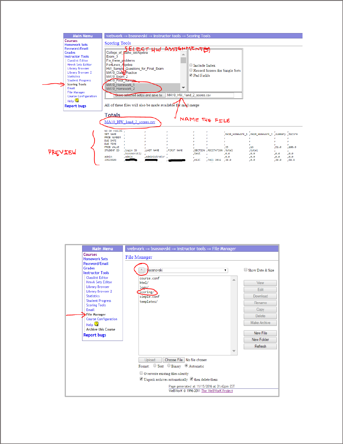 Scoring Tools – go here to download a spreadsheet (.csv file) of student grades on selected