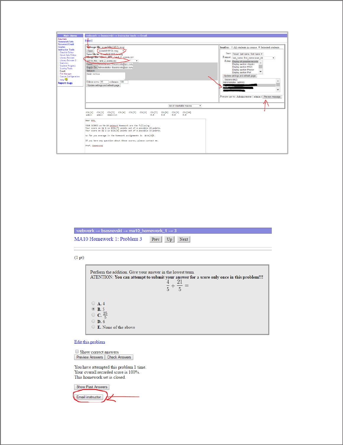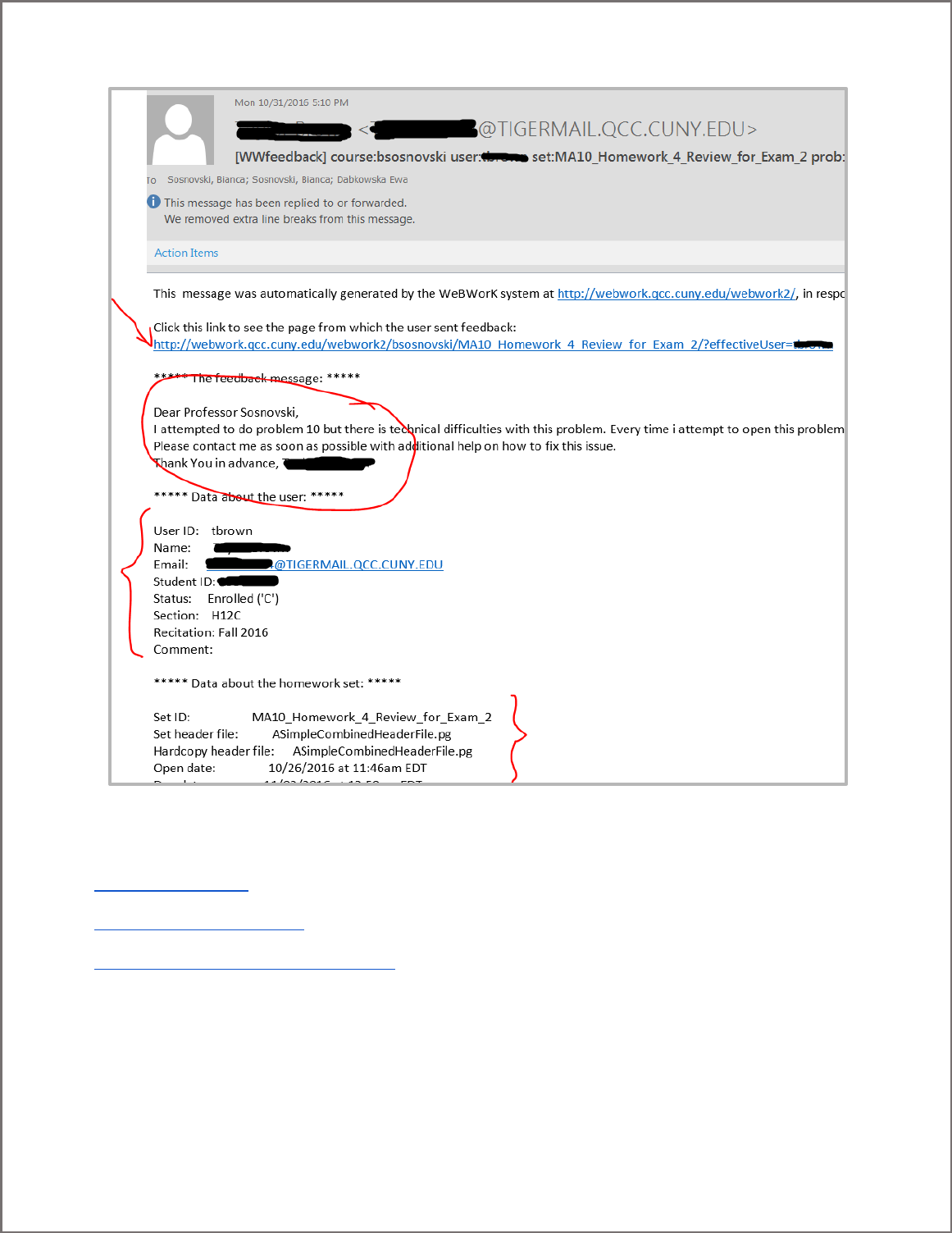 set. WeBWorK will send you an email detailing the question details and including the student’s
