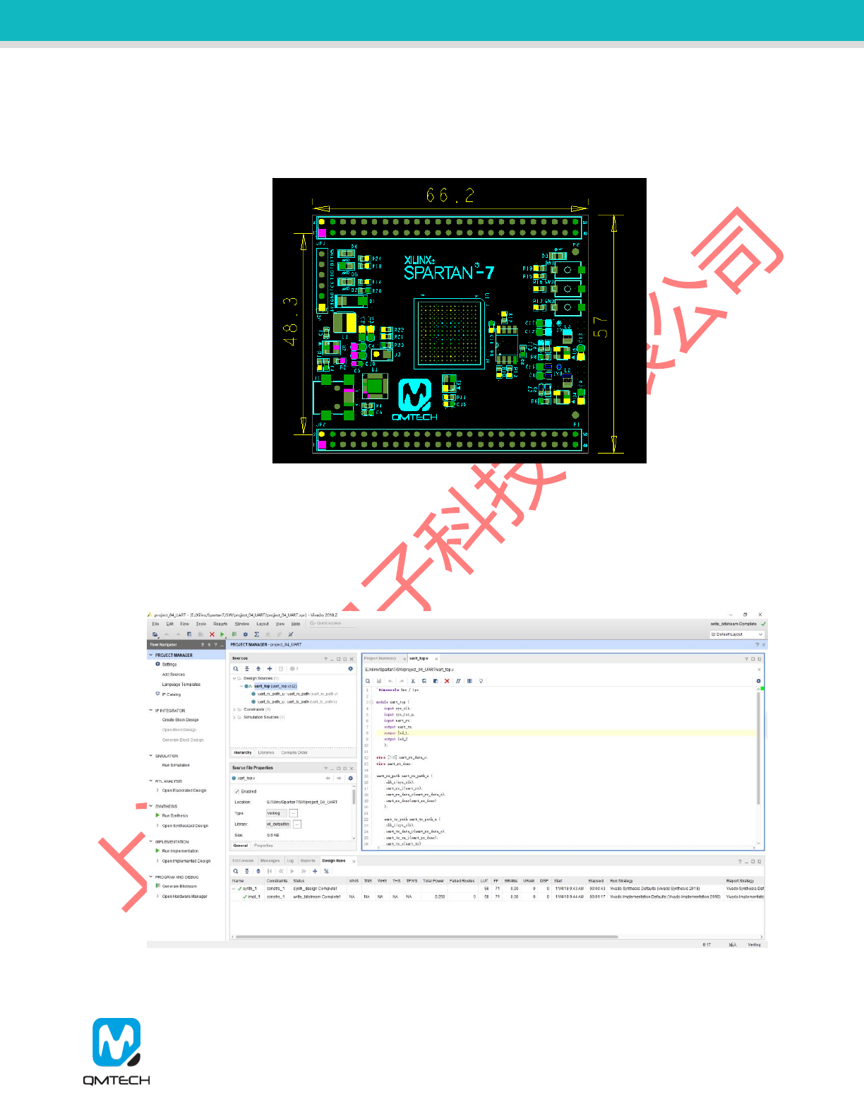 QM_Spartan-7 development board PCB size is: 6.6cm x 5.7cm;