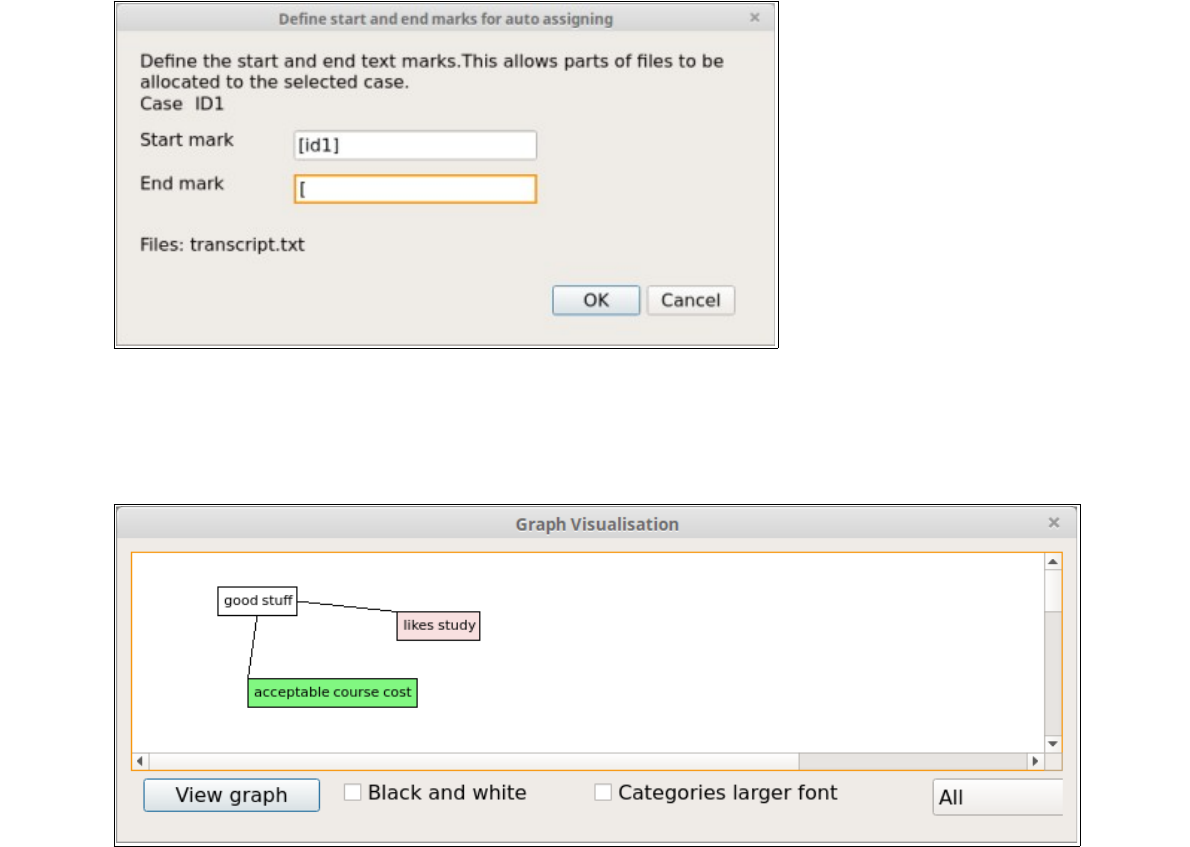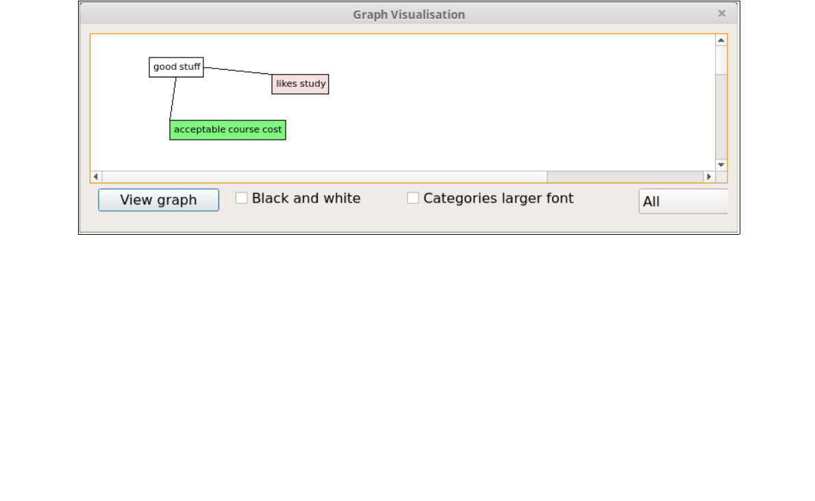 statistic. A graph displaying codes and categories can be generated to visualise the coding hierarchy.