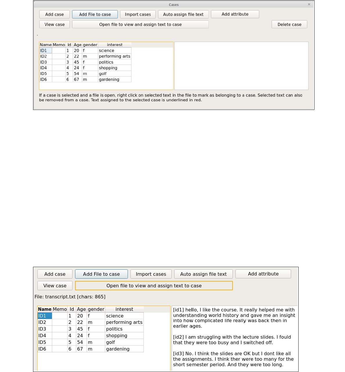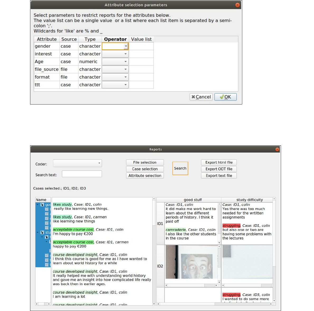 buttons. Only codings within the selected files or cases will be presented. If text is entered into the
