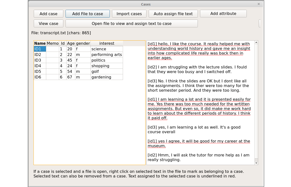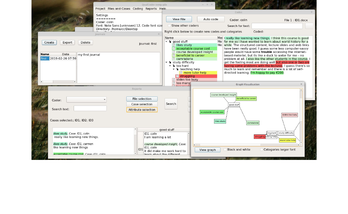 With QualCoder you can code text and images, write journal notes and memos. You can categorise