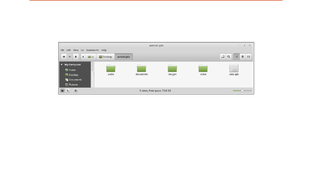 The qda data folder contains folders for imported documents, images and audio (although audio is