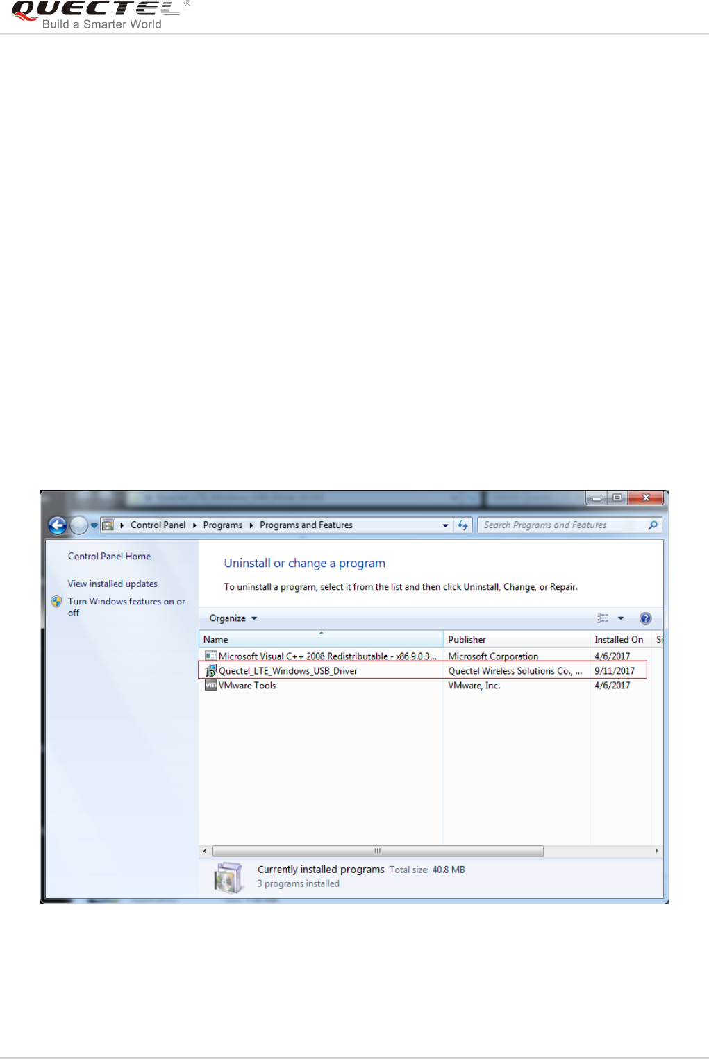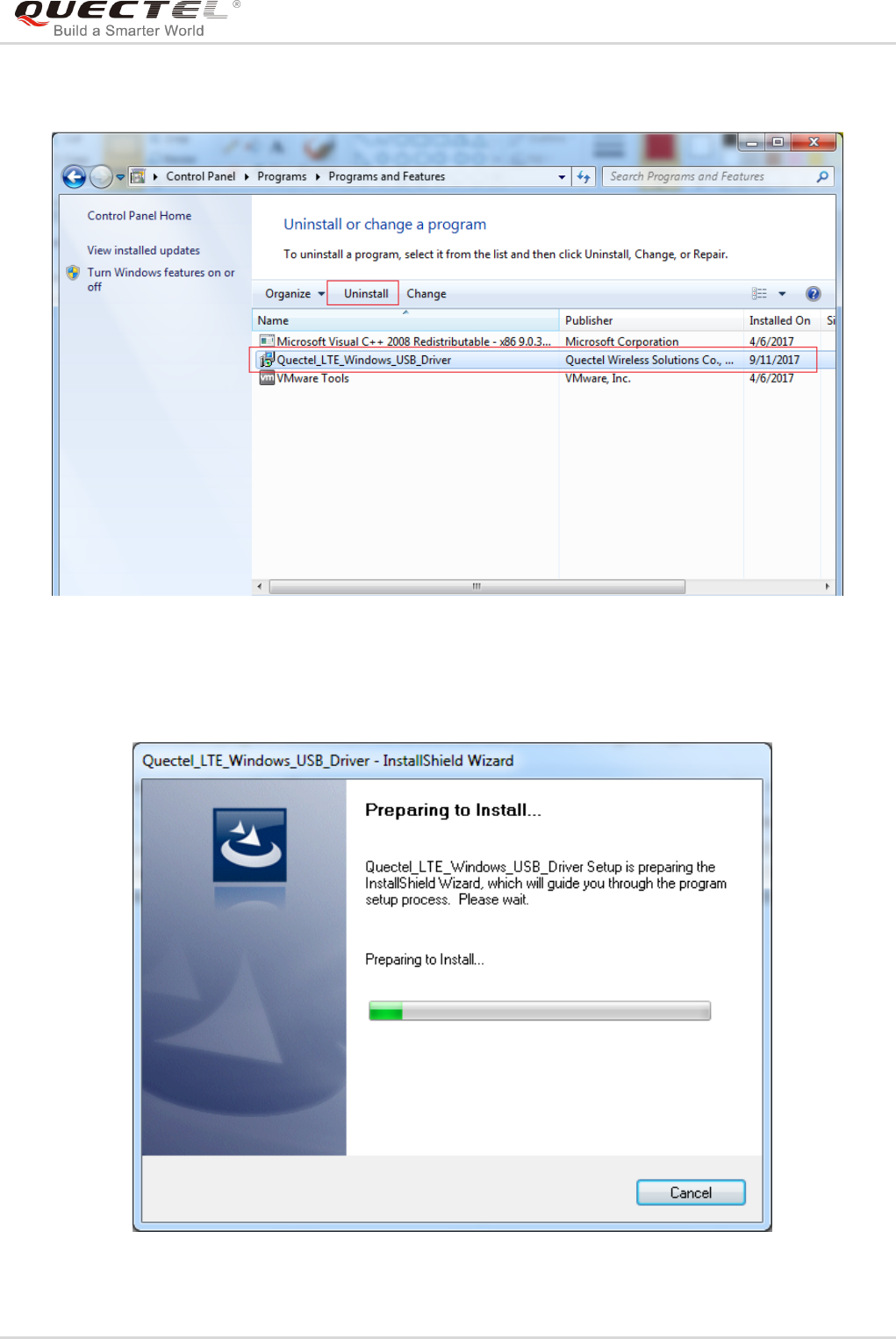 This chapter mainly provides the way to uninstall USB driver for Quectel LTE modules. The uninstallation