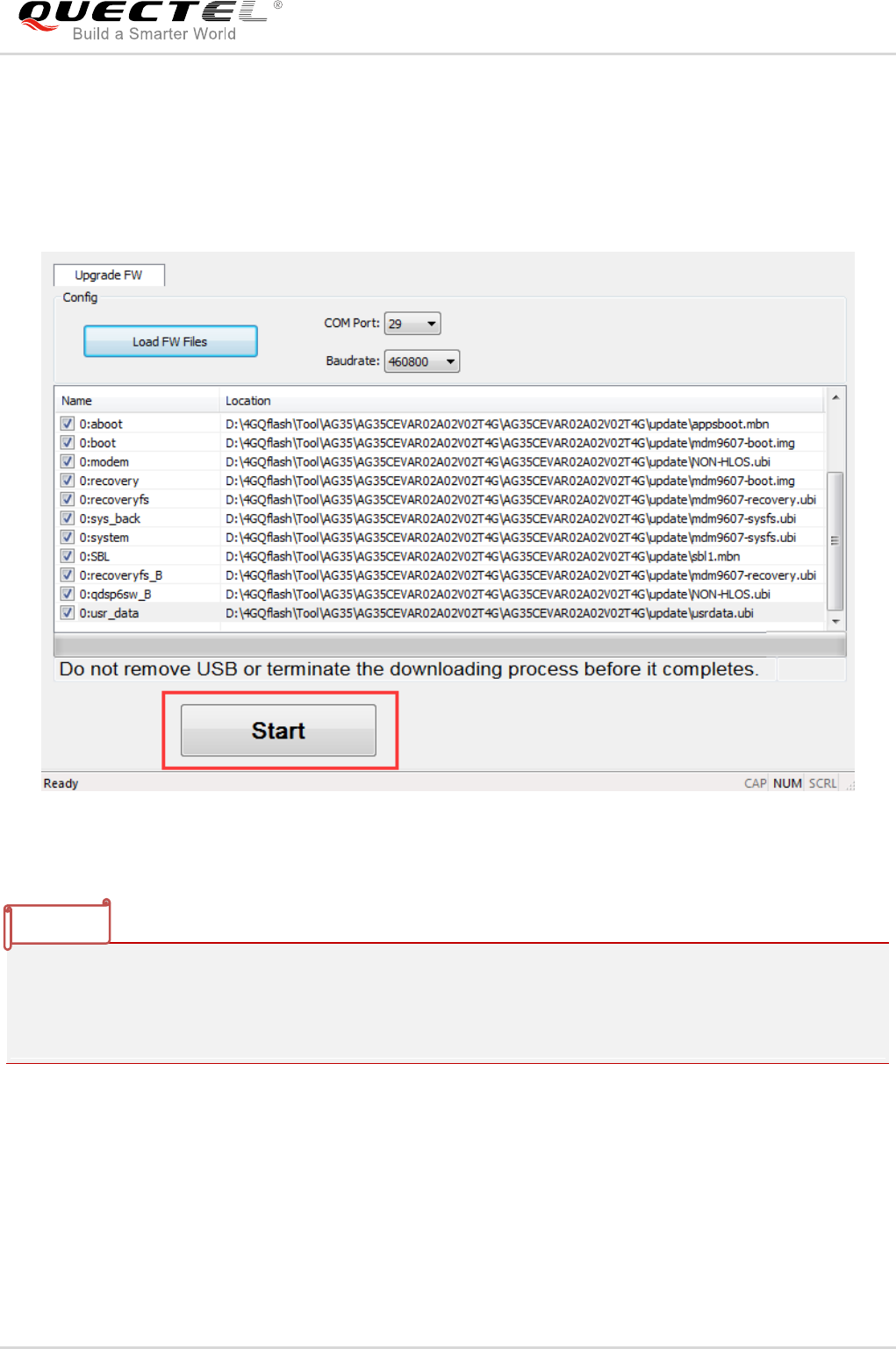 Step 1: Click “Start” button to upgrade the firmware. There is no “Stop” button while upgrading firmware