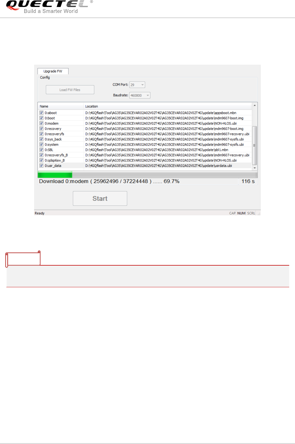 For BC95-G, BC68 and BC66 modules upgrading firmware through TE-B, please wait for the prompt
