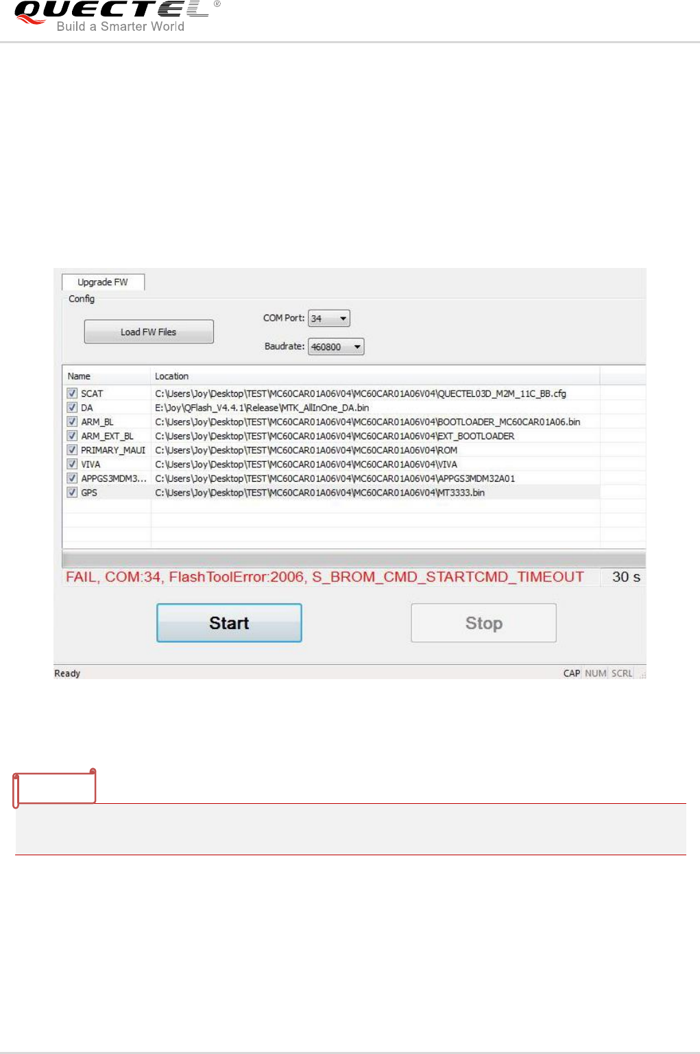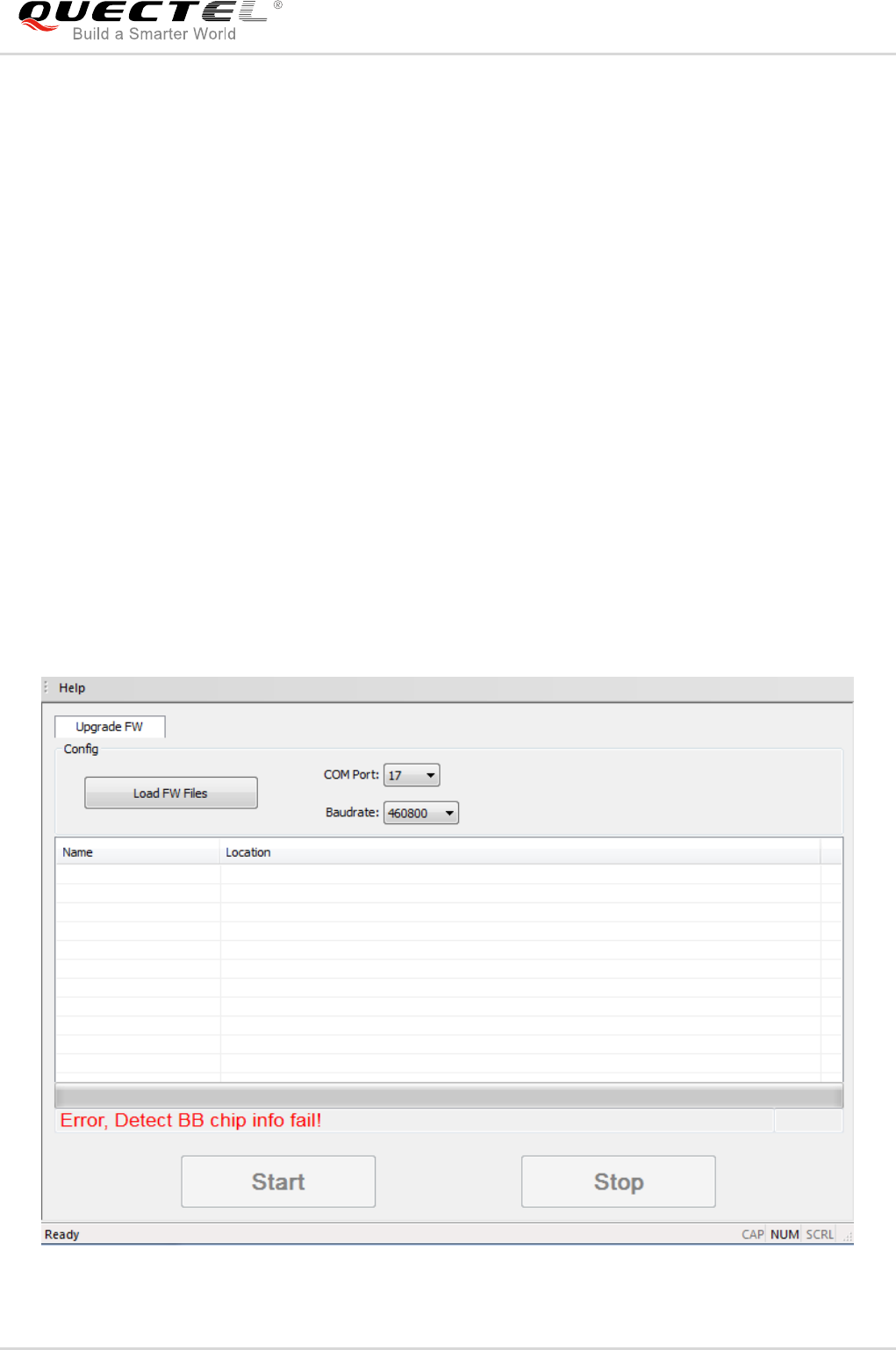 For Mxx modules, if an unsupported baud rate is selected, the tool will stop to run and no error message