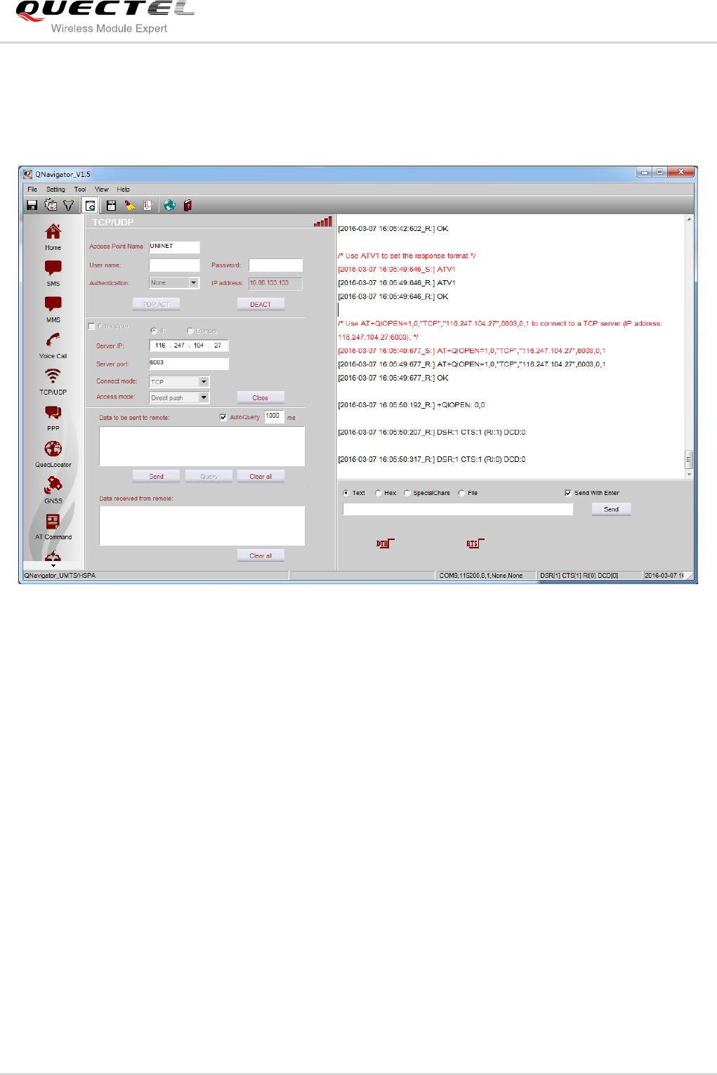 AT+QGPSCFG=“OUTPUT” command) first. Choose the port number, and then click “Connect”. The