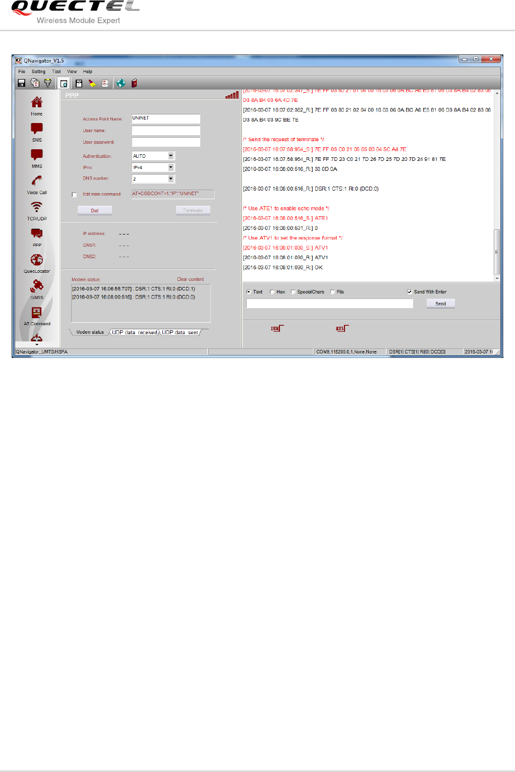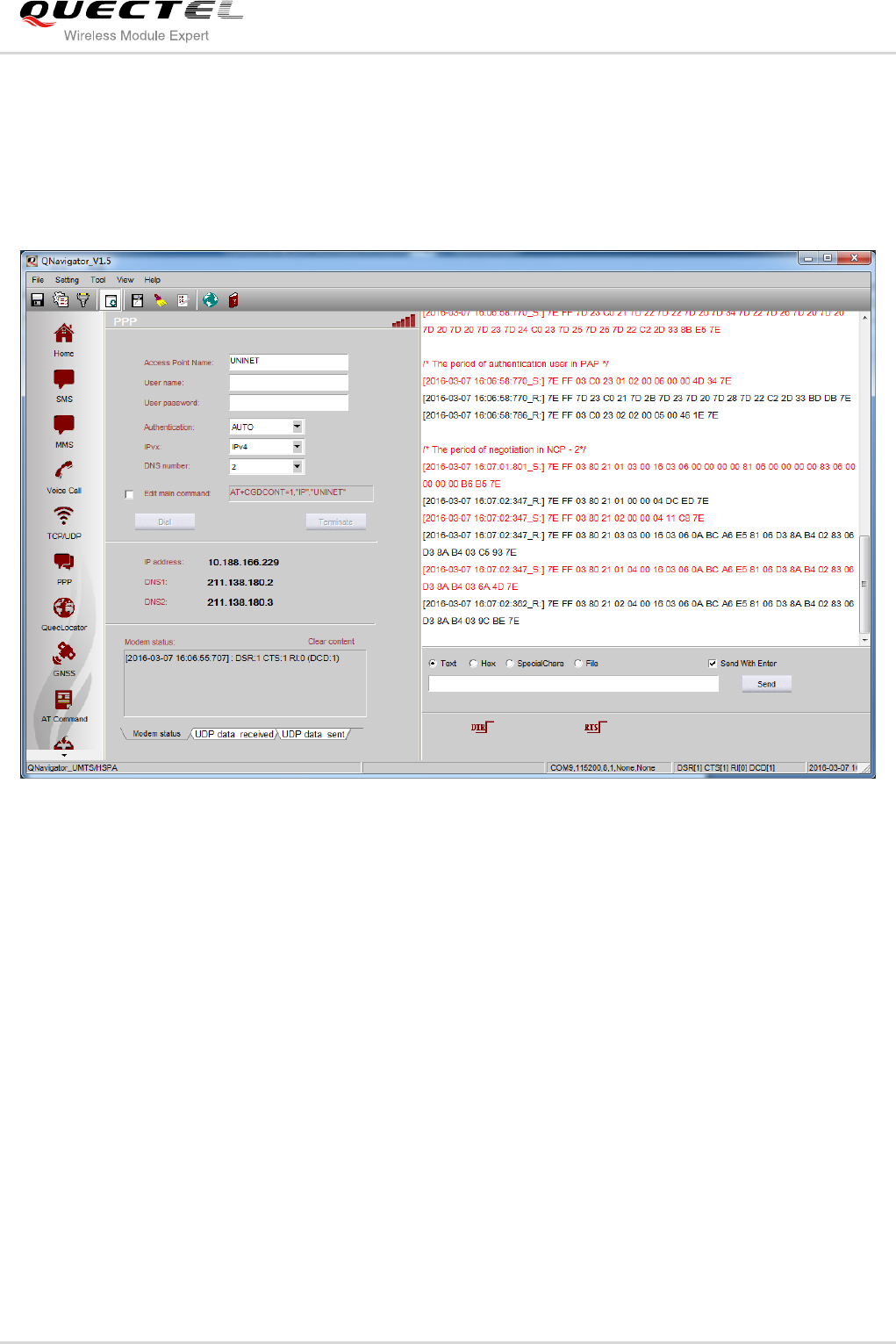 Negotiated IP address and DNS will be displayed after successful dial-up. In the process of PPP dialing, a