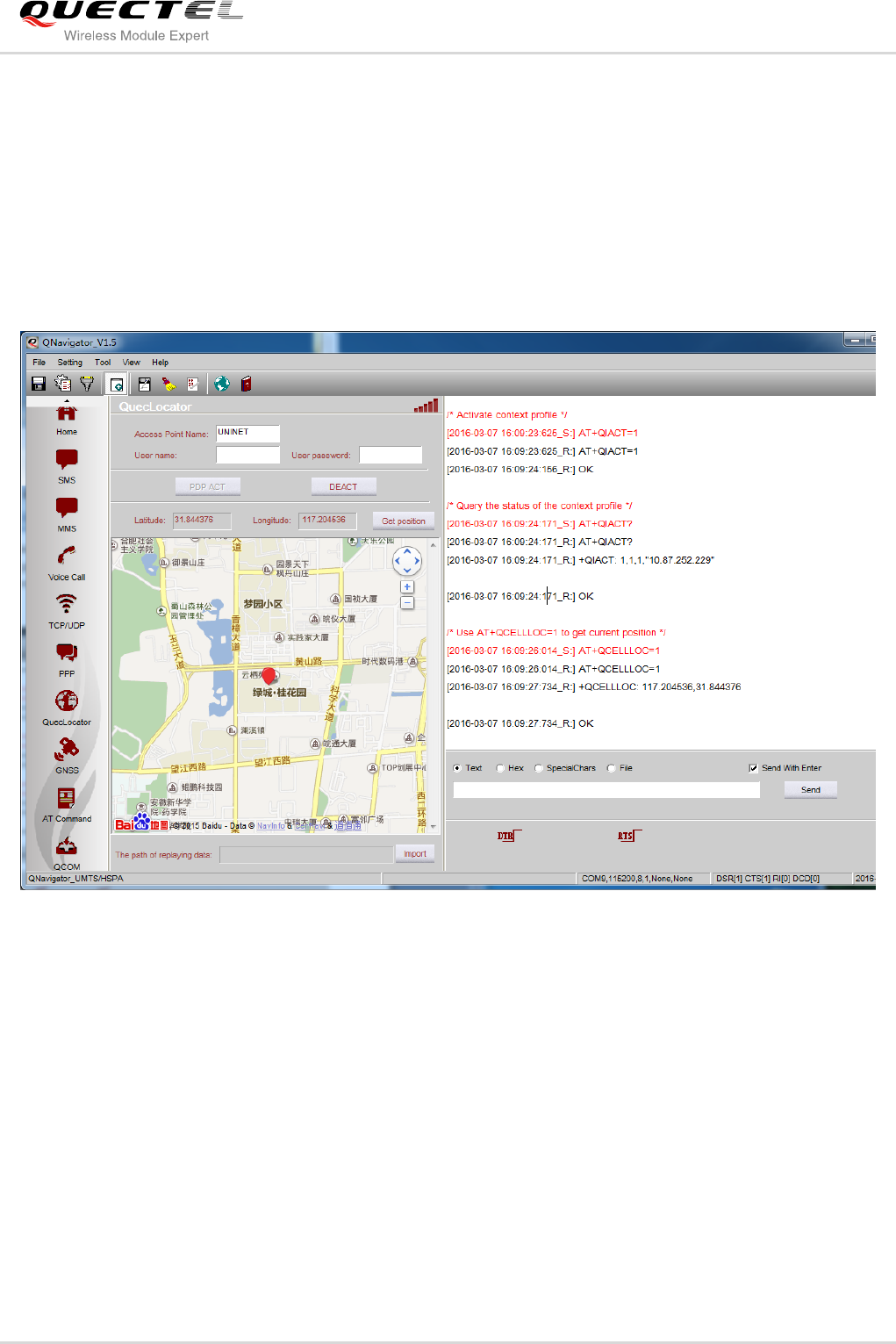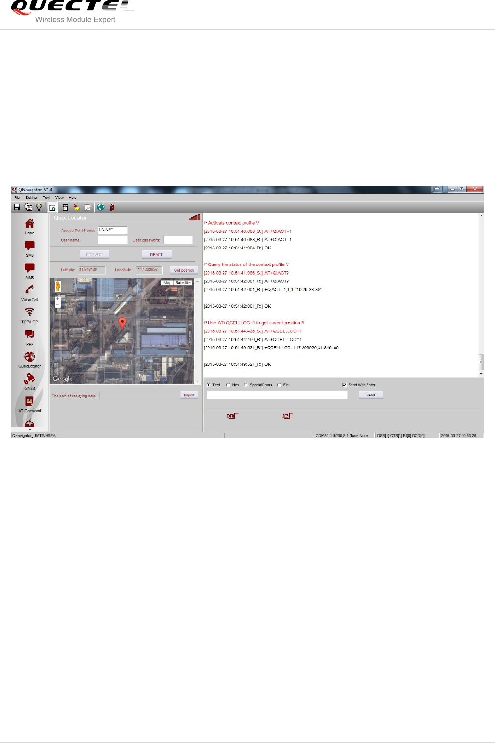 “AT+QGPS=1” will be sent automatically from the AT port which is connected to the HOME page after
