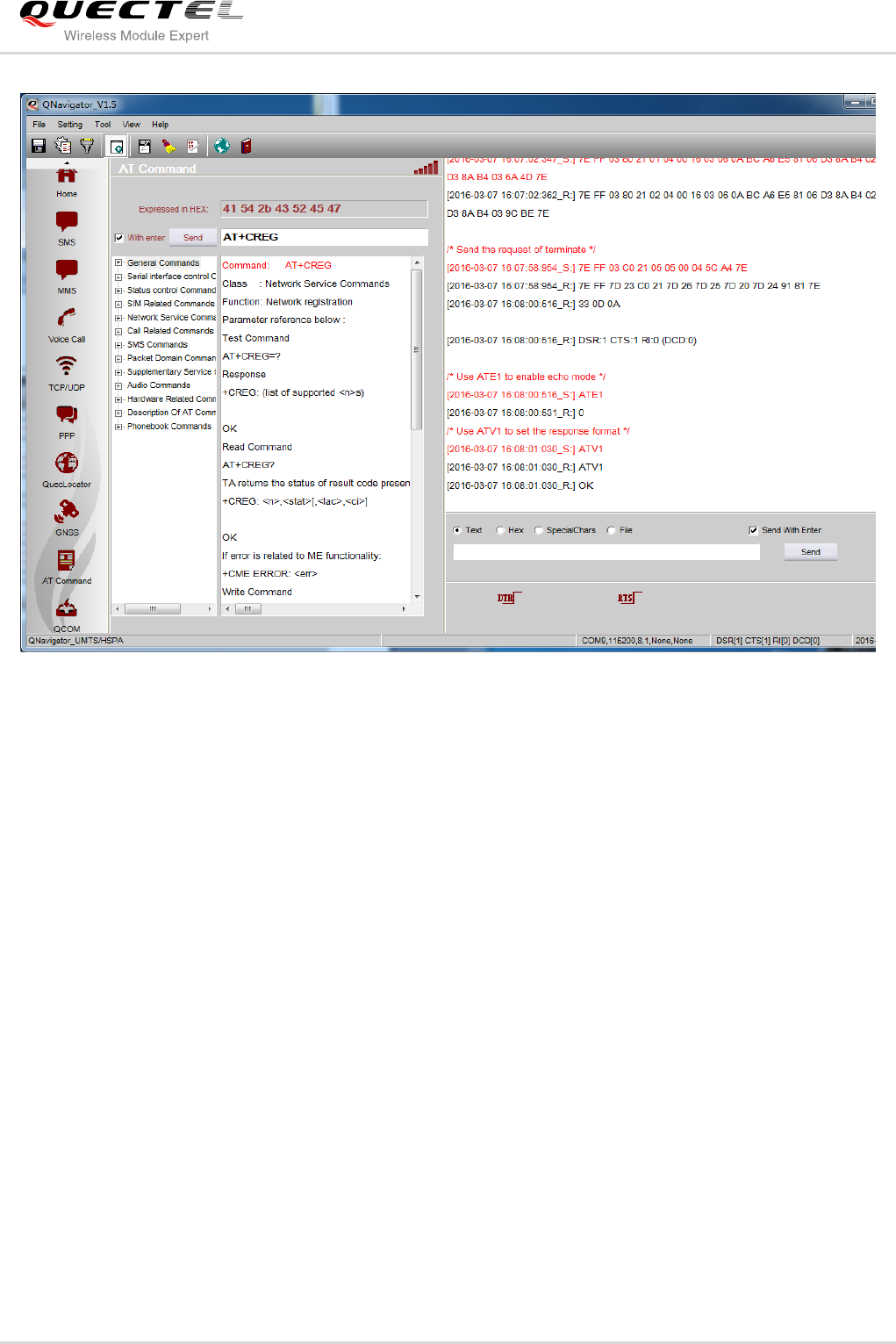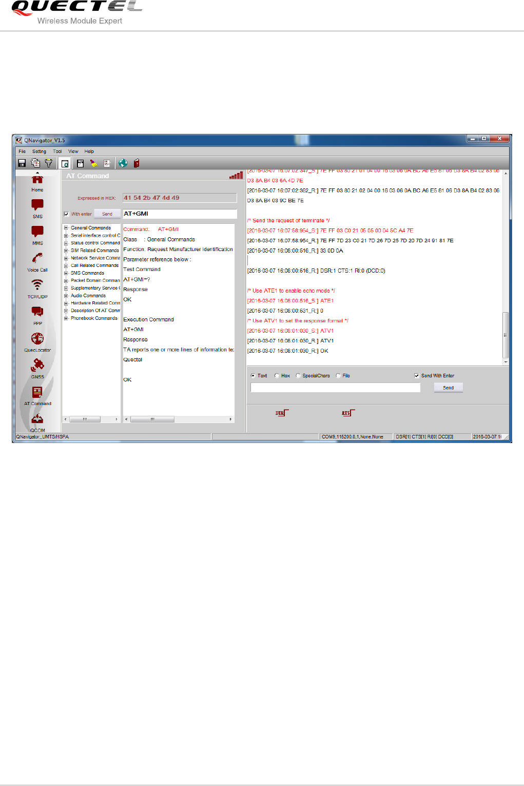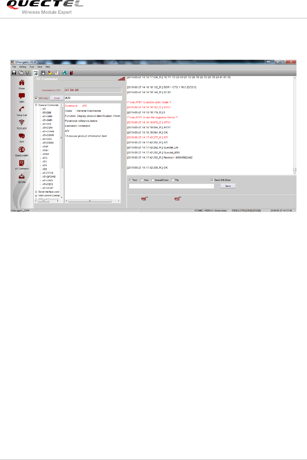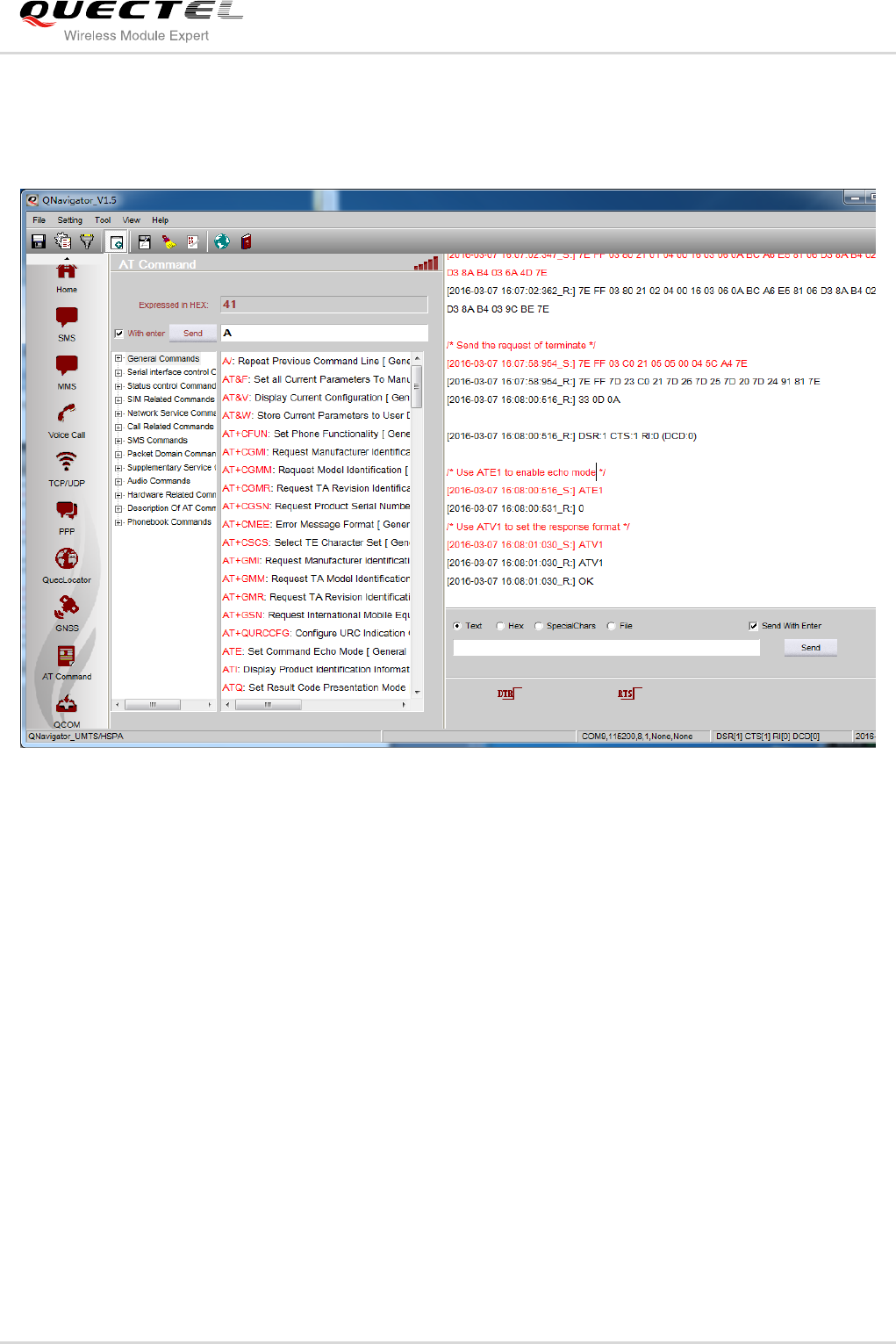 AT commands can be sent in Text and Hex modes. Enter an AT command in the text box which is on the