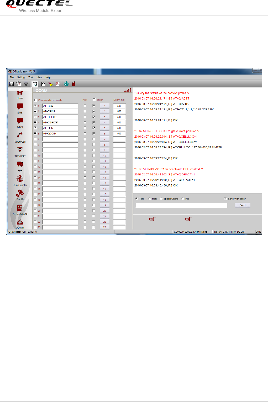 AT command’s pressure testing can be performed under the QCOM test page, as shown below: