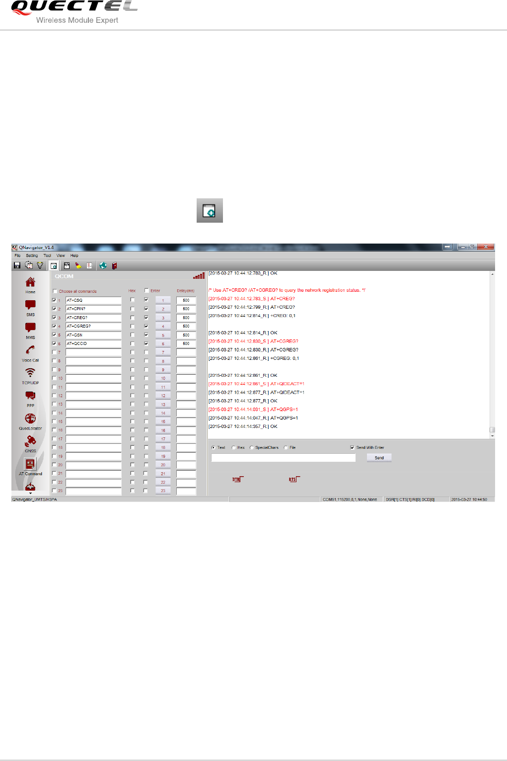 Input the keywords in the Send column to query AT commands. The results including the keywords will be