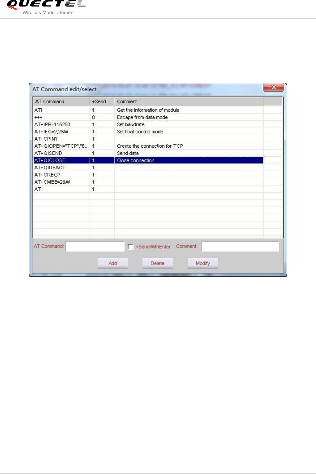 corresponding row in the list. The AT commands dialog box is shown as below: