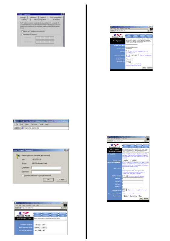 WEP key, the access point setup and installation are