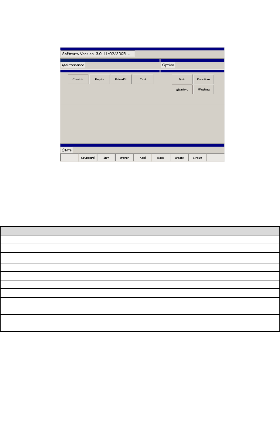To enter in Service program, from “Option” sub menu select “Mainten.” button and then