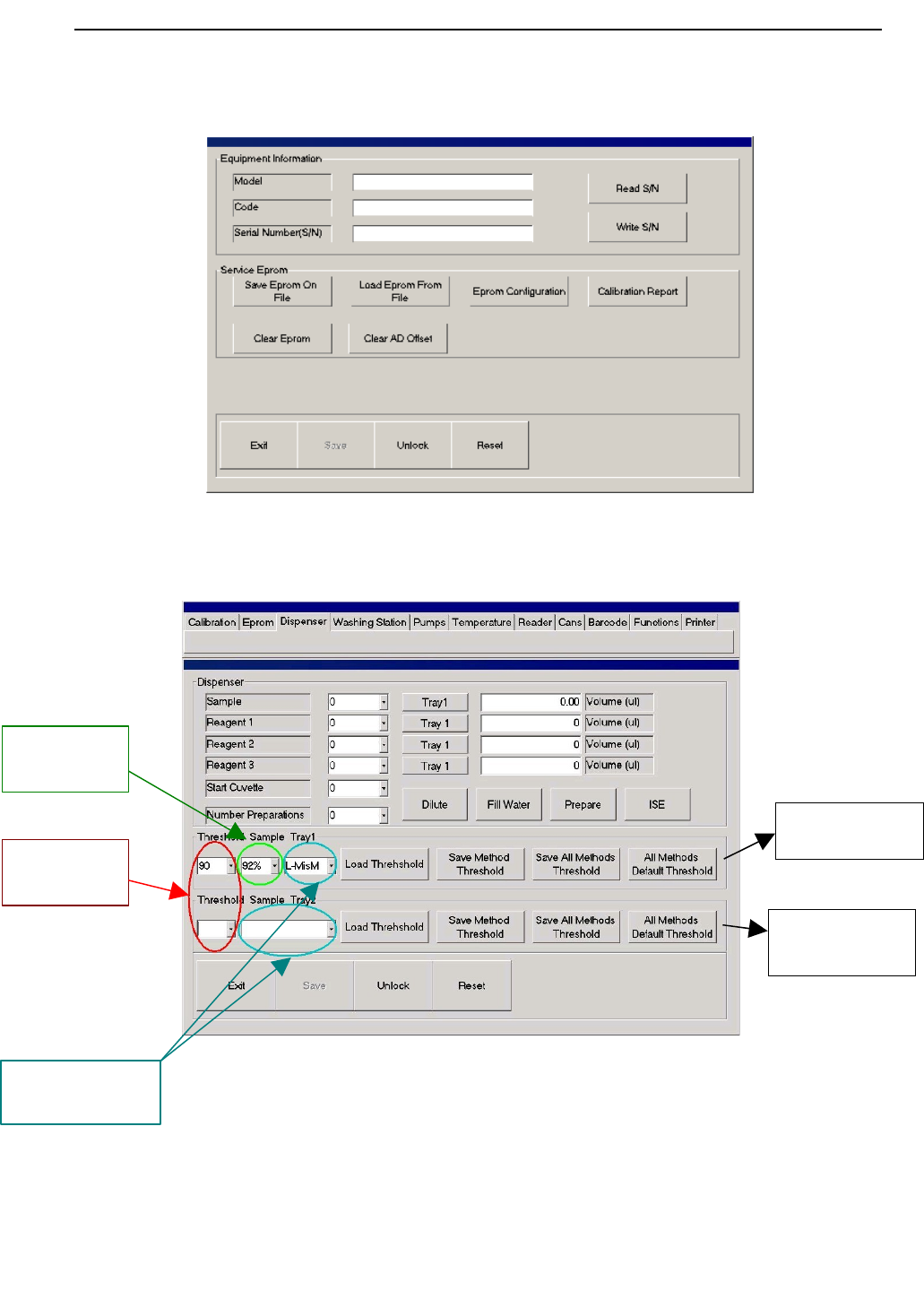 Calibration By this menu you can set all the mechanical calibrations for the instrument