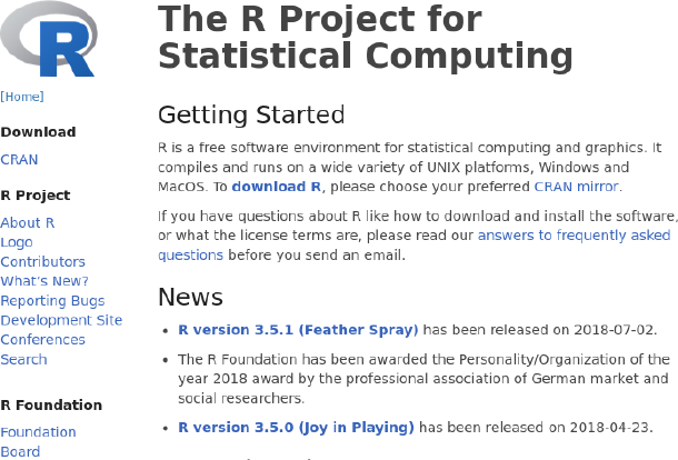 At the time of writing, the latest versions are R 3.5.1 (nicknamed “Feather Spray”) and version 1.1.456 of