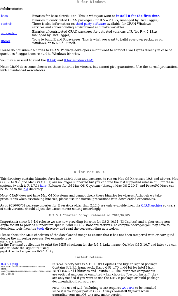 On Mac OS X, follow the link ‘Download R for (Mac) OS X’. You will land on the page listed in Figure 5: