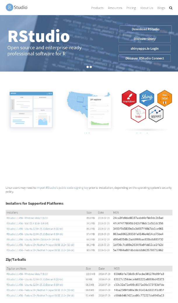 Click on ‘Download RStudio’ and scroll down until you see the available installers for RStudio Desktop, as in