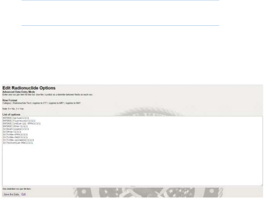 Below is a sample Edit Rare or Controlled Radionuclide List