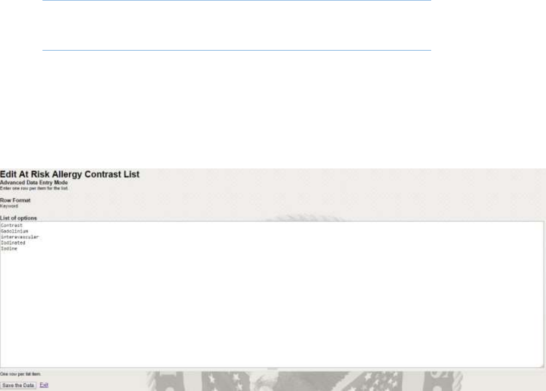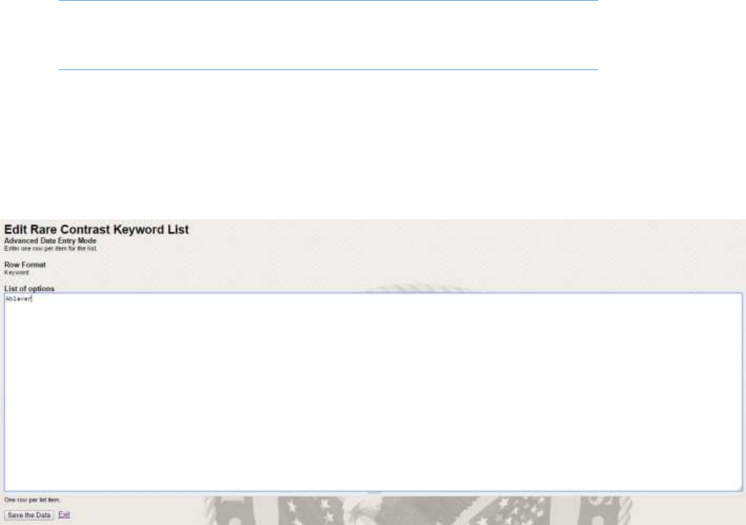 Figure 18- Edit Rare or Controlled Contrast List