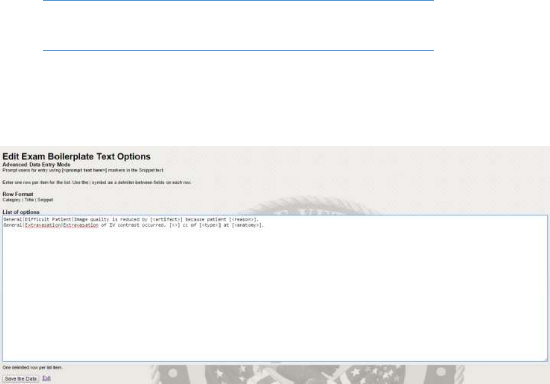 Figure 21- Edit Exam Boilerplate Text Options